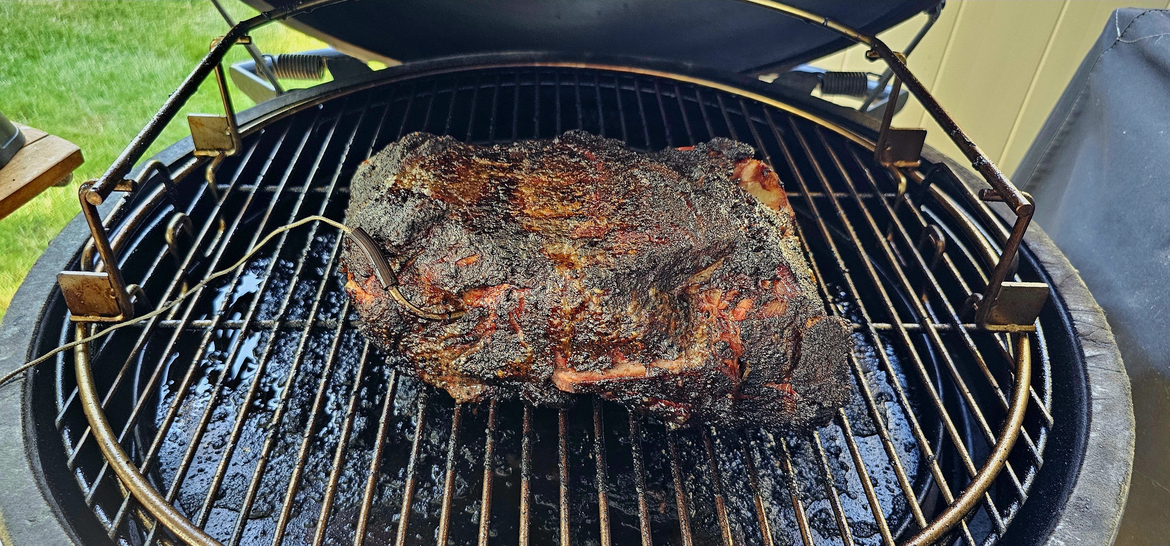 This chunk of pork has been showered in bacon grease for 4,5 hours