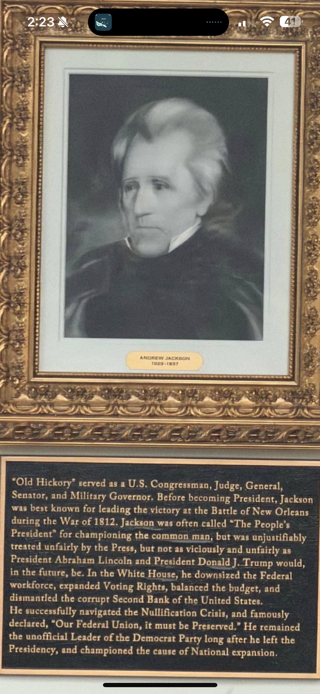 Updated Andrew Jackson Plaque in White House 🤣🤣🤣