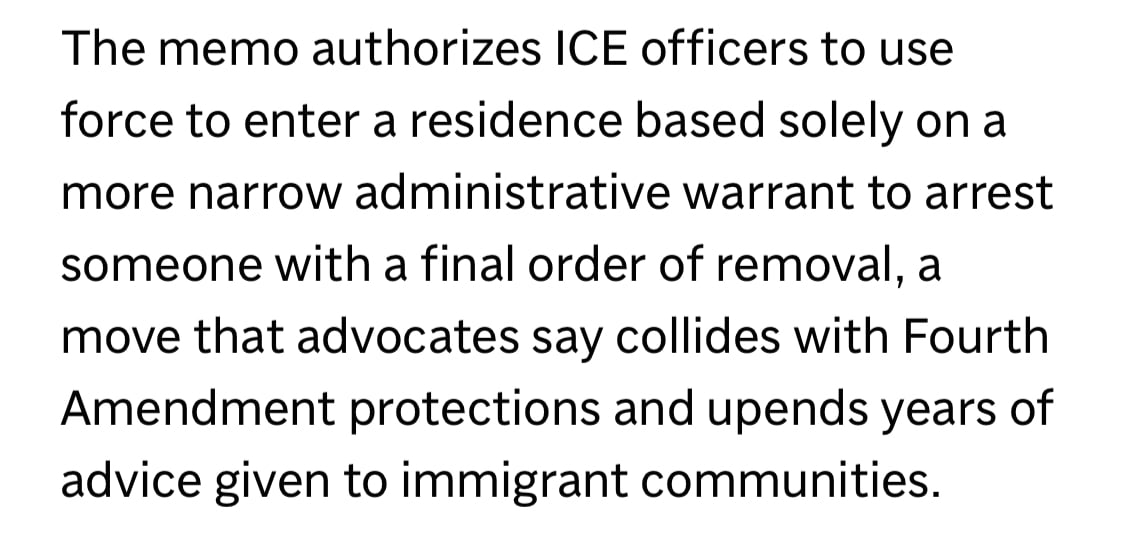 Cool! Federal agents no longer need warrants! So glad they won’t be hampered by need for warrants, they waste so much time and don’t worry this will only impact illegal aliens, you know, like not people.