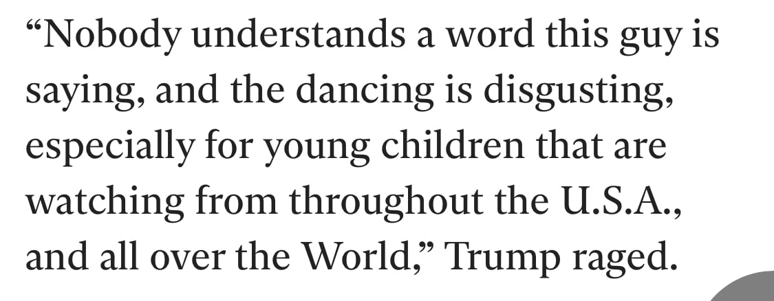 I find this ironic based on the Epstein files being released. Guess Bad Bunny isn’t rich enough or connected enough for the behavior?