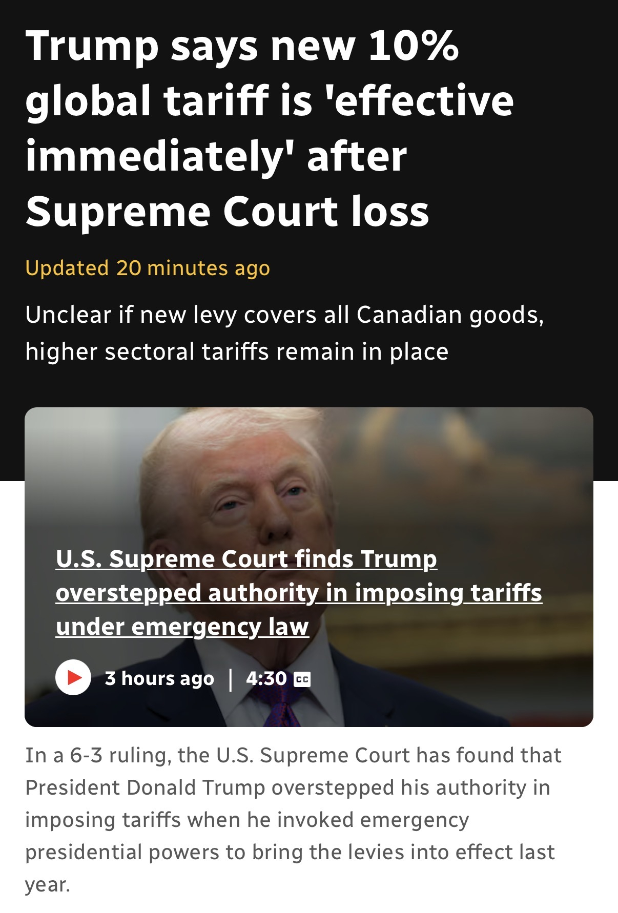 The Supreme Court on Friday struck down Trump’s global tariffs, saying the president exceeded his authority by illegally circumventing Congress to carry out his wide-ranging economic campaign that affected many of America’s closest allies. Reuters described it as Trump’s “key economic and foreign policy tool” and “one that has alienated trading partners, affected financial markets and caused global economic uncertainty.”