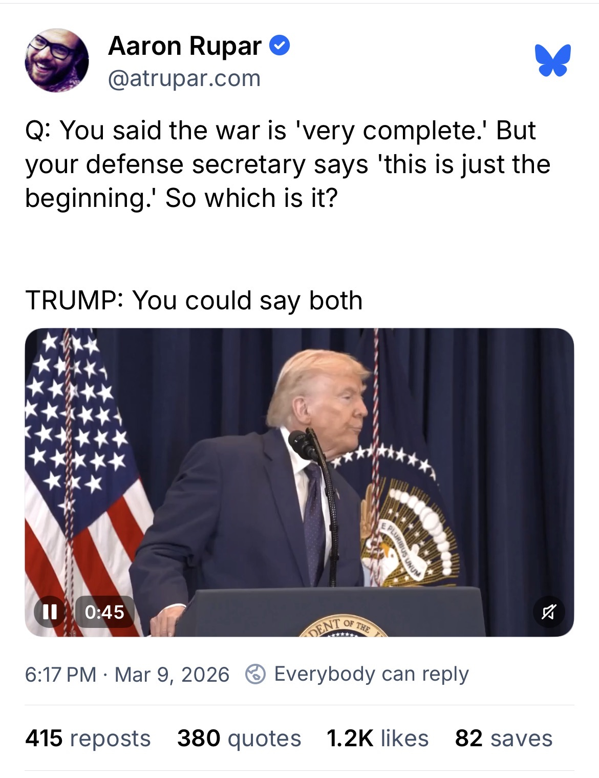 It’s Schrödinger's war.Ozzie_Isaac said:This administration is nothing if not in lock step!
