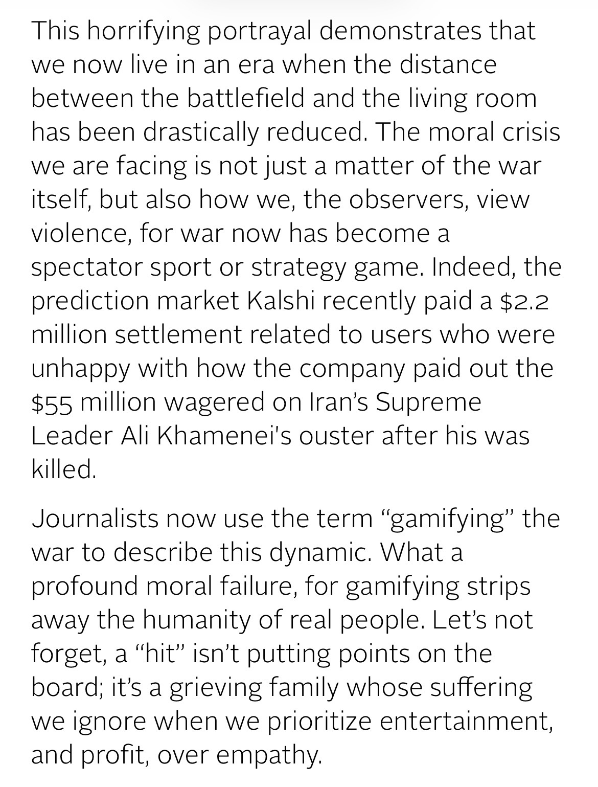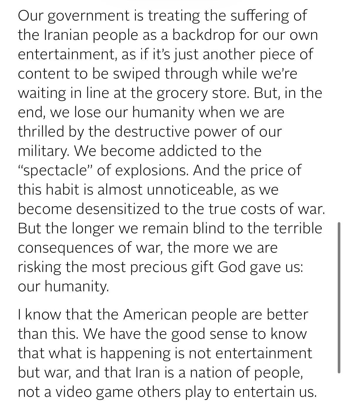 I do appreciate how we’ve killed the old, frail Supreme Leader of Iran just to have him replaced by his young, healthy son who wants nukes and who just had his father, mother, wife, and child murdered on the same day by his mortal enemy.