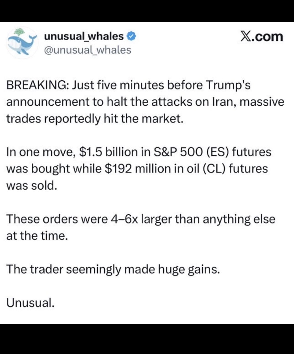 The possibility of negotiations to end the war, conveniently announced prior to the markets opening, saw stocks jump and the S&P leap to one of its best days since before the war started, per AP. The price of crude oil fell to around $100, down from its $120 peaks last week.