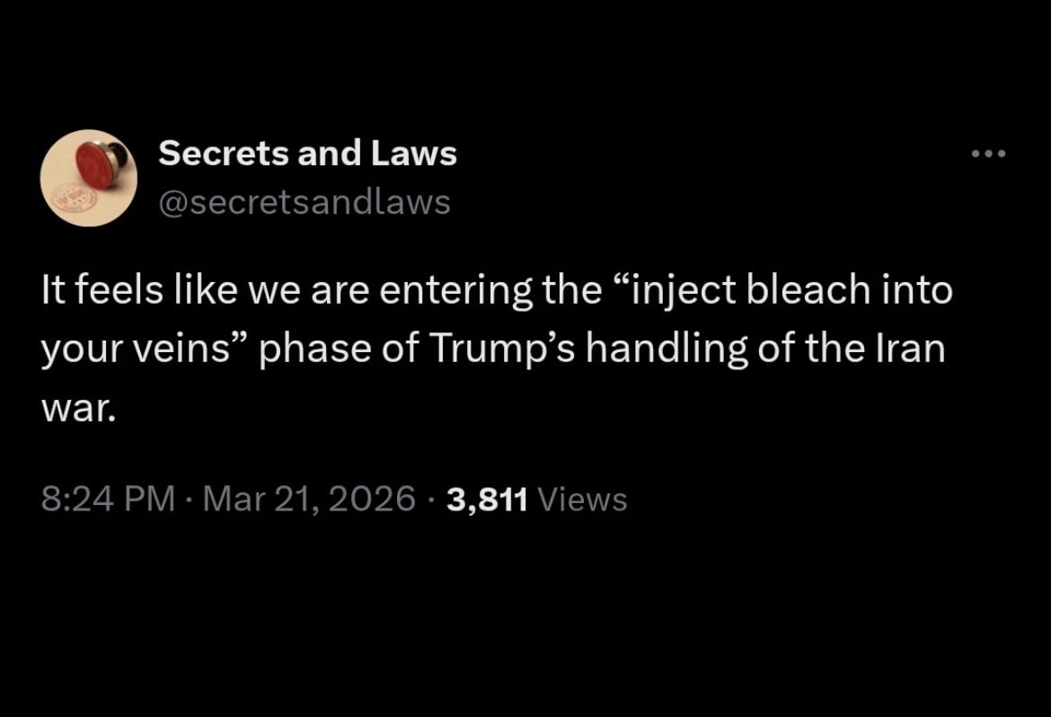 And another grain of salt: This is the latest war assessment we’ve gotten from the president, which has so far ranged from the U.S. “winning” to the military potentially “winding down” to more promises to “obliterate” Iran’s energy sector. All the while, the Pentagon has Marines en route to the region, and while Trump may see an off-ramp, Israel does not. They plan to continue operations while avoiding Iran’s energy sector, though they were told about Trump’s post ahead of time, Bloomberg’s Dan Williams reports.
