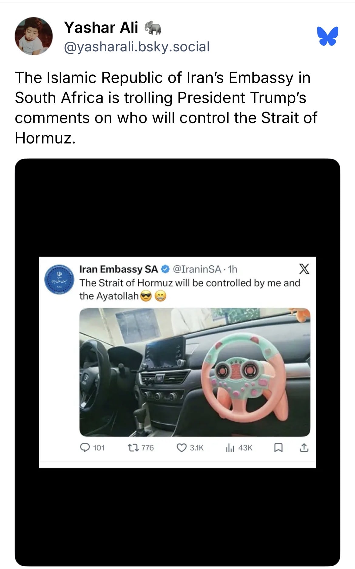 But Trump doubled down today, telling reporters before boarding Air Force One to Memphis that both sides have engaged in “very, very strong talks” with “major points of agreement.” Trump’s diplomacy duo — Steve Witkoff and Jared Kushner — are leading the talks, which kicked off yesterday and will continue by phone today. “We have a very serious chance of making a deal,” Trump said. He insisted that “they called.”