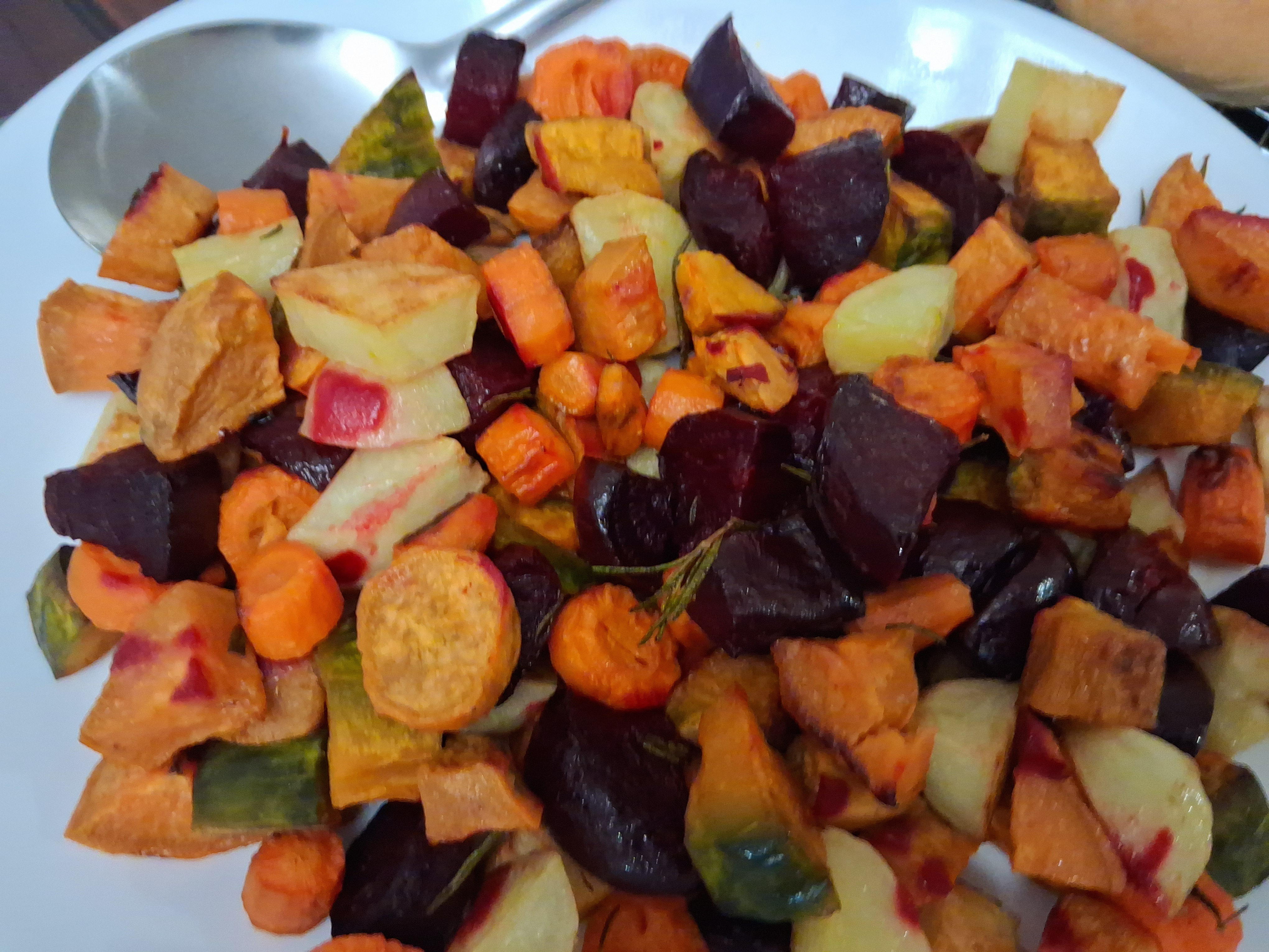 Roasted root veggie (each veg was individually parnuked, roasted beets from freezer)