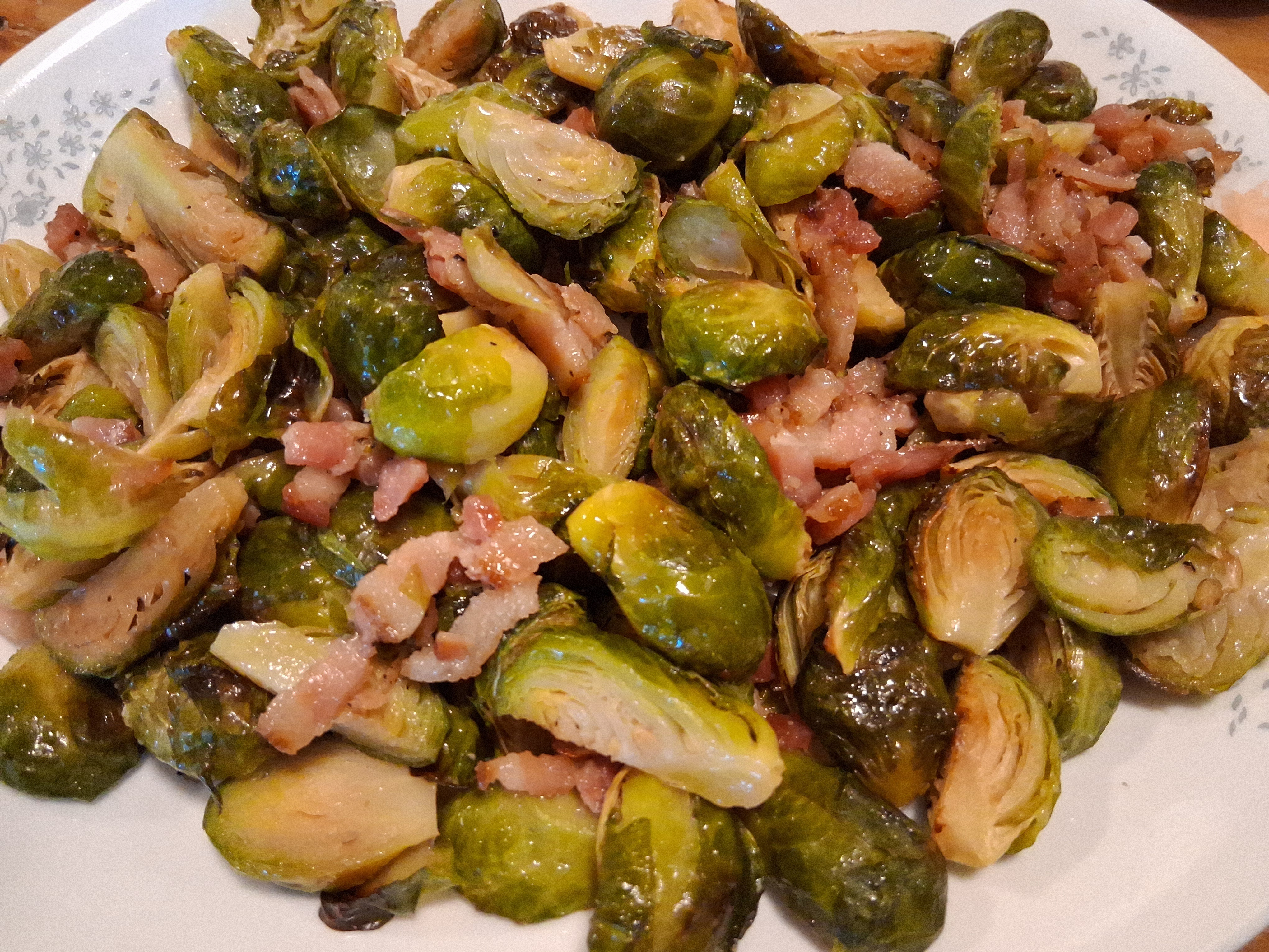 Maple roasted broccoliussels sprouts (parnuked) with bacon