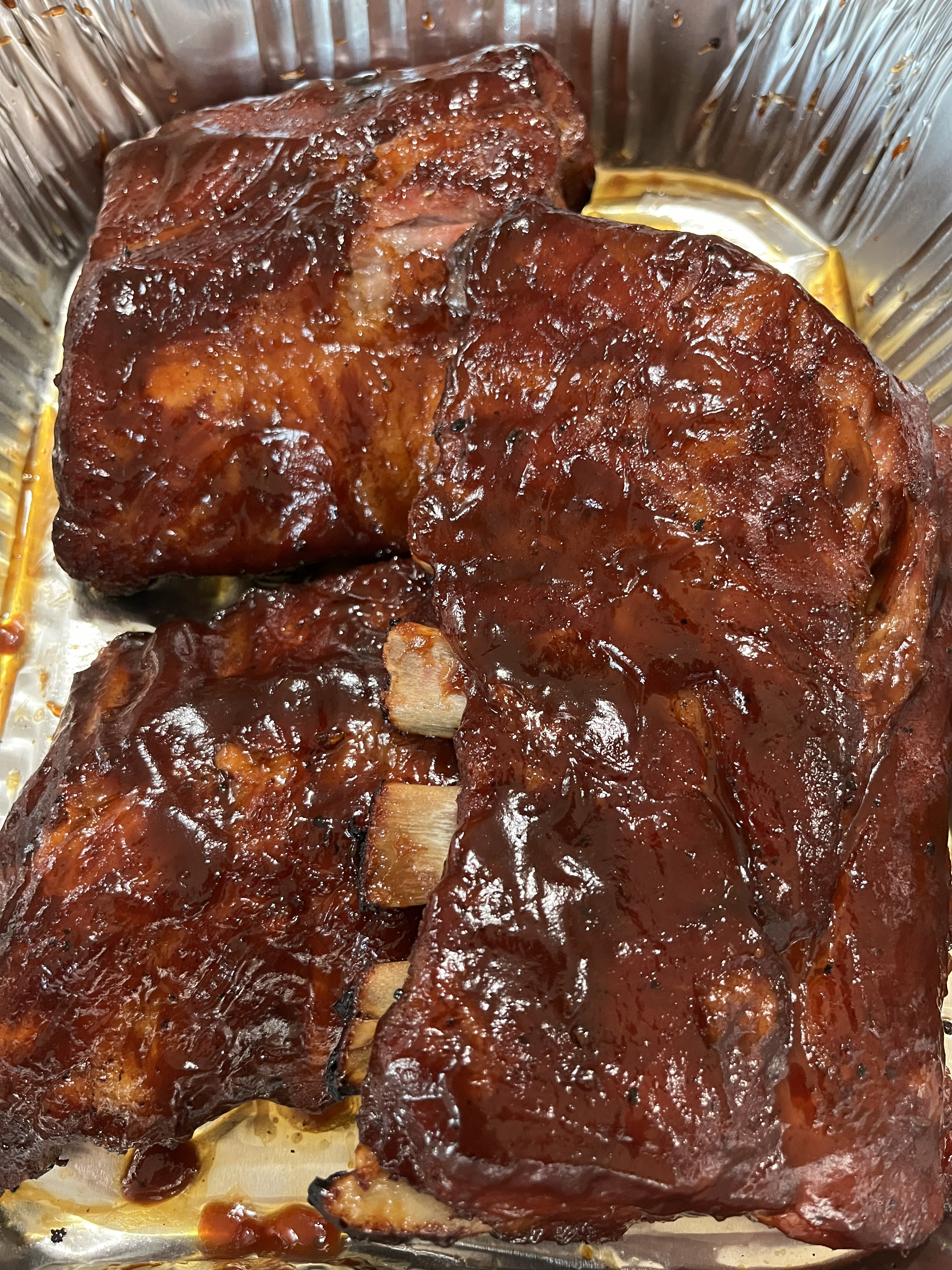 Ribs were dusted with Meat Church Honey Hog and the Sweet Baby Rays