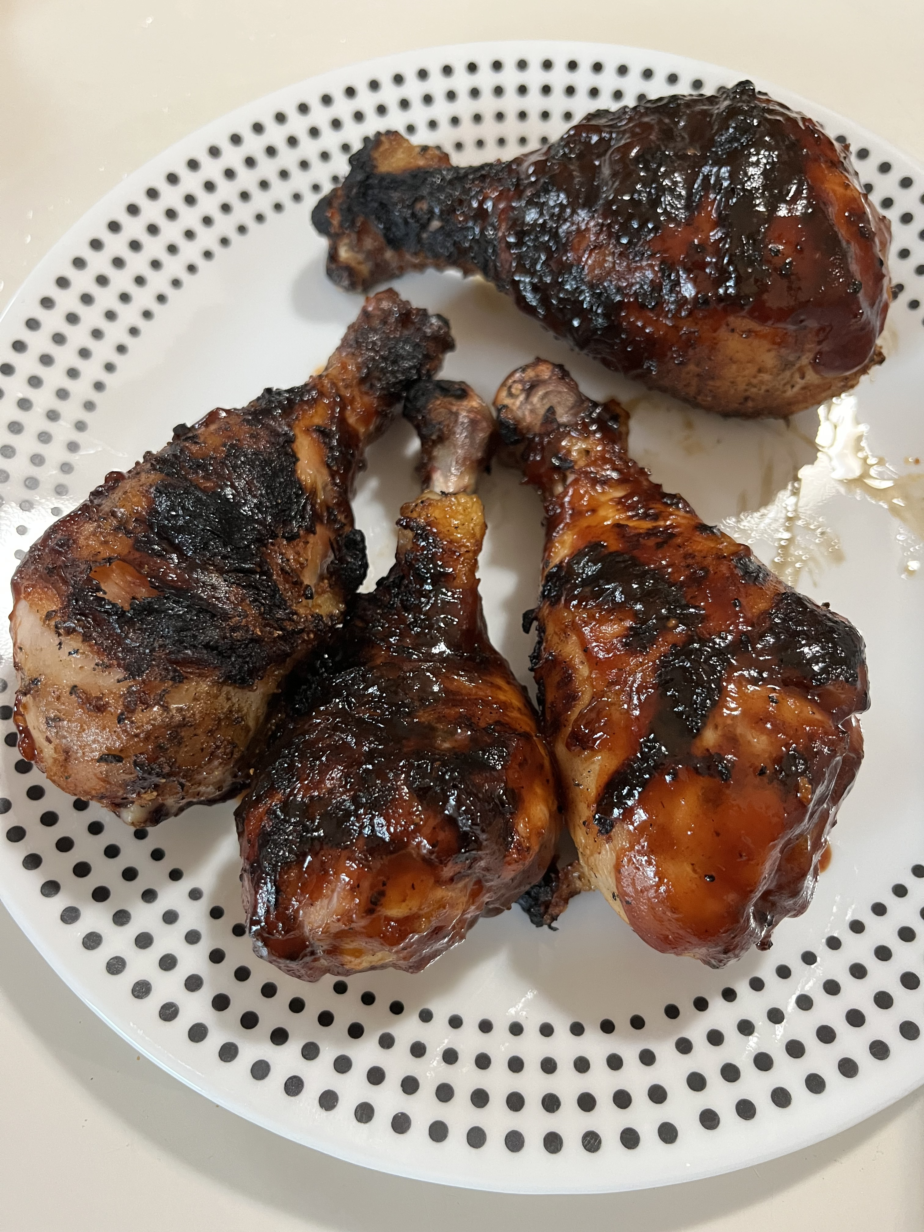Chicken legs were dusted with SPG and then hit with sweet Baby Rays BBQ