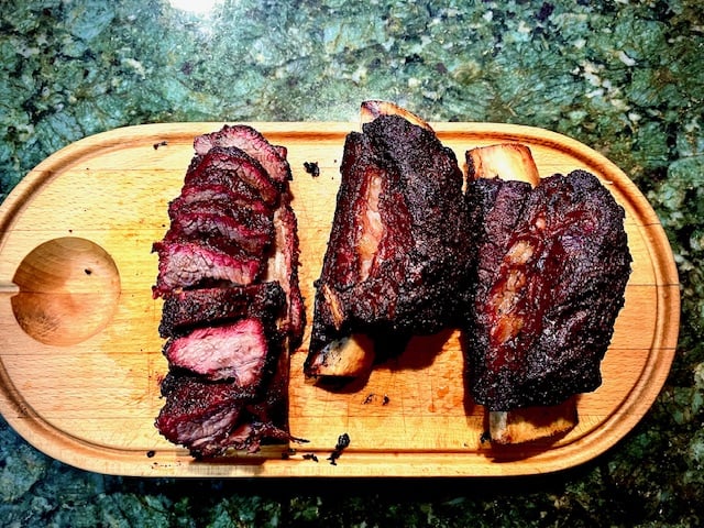 Love the bark and the smoke ring. Neat cutting board with well to collect the juice?canuckland