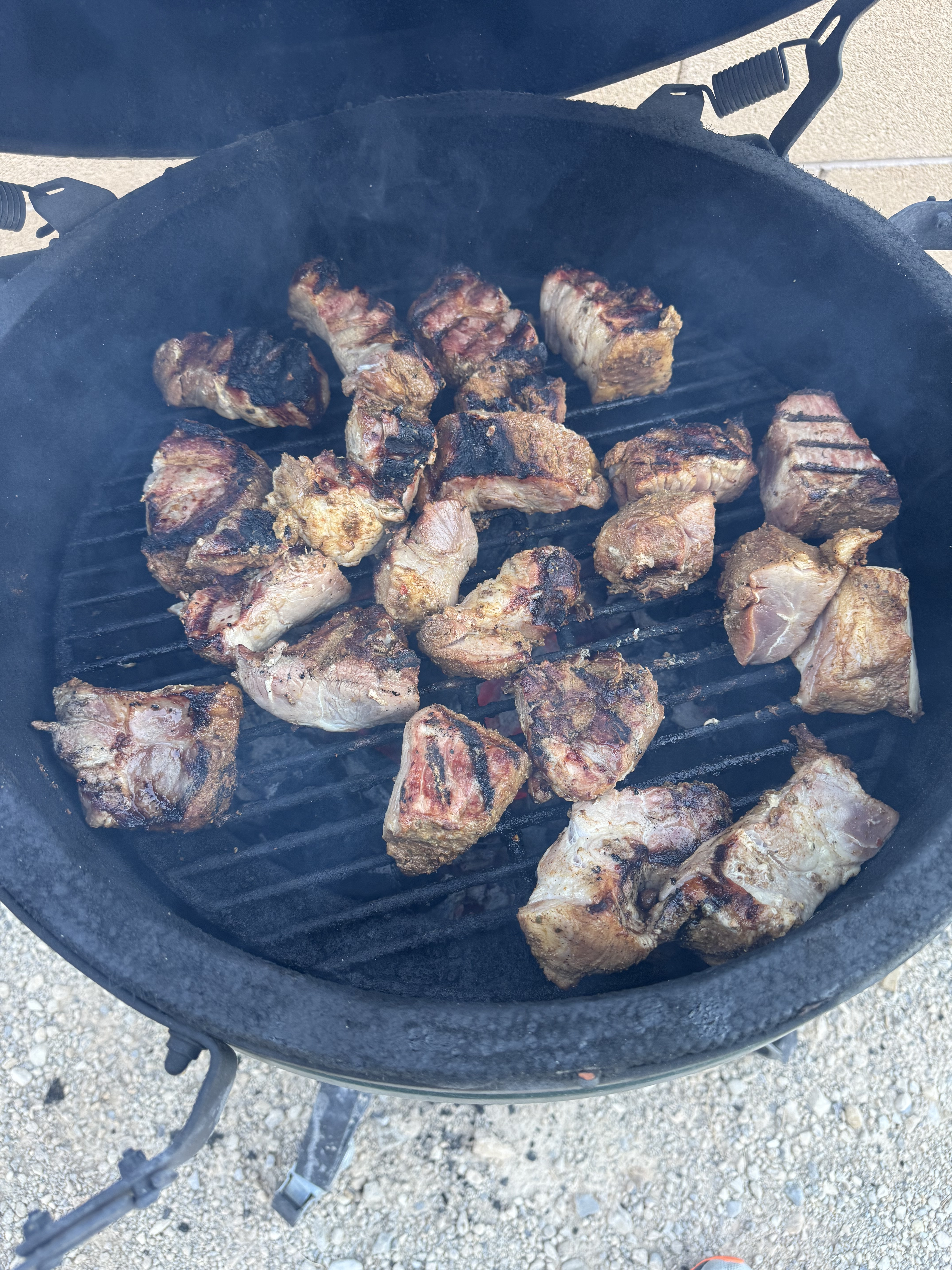 That looks great!Large Egg with adjustable rig, Kick Ash Basket, Minimax and various Weber's.