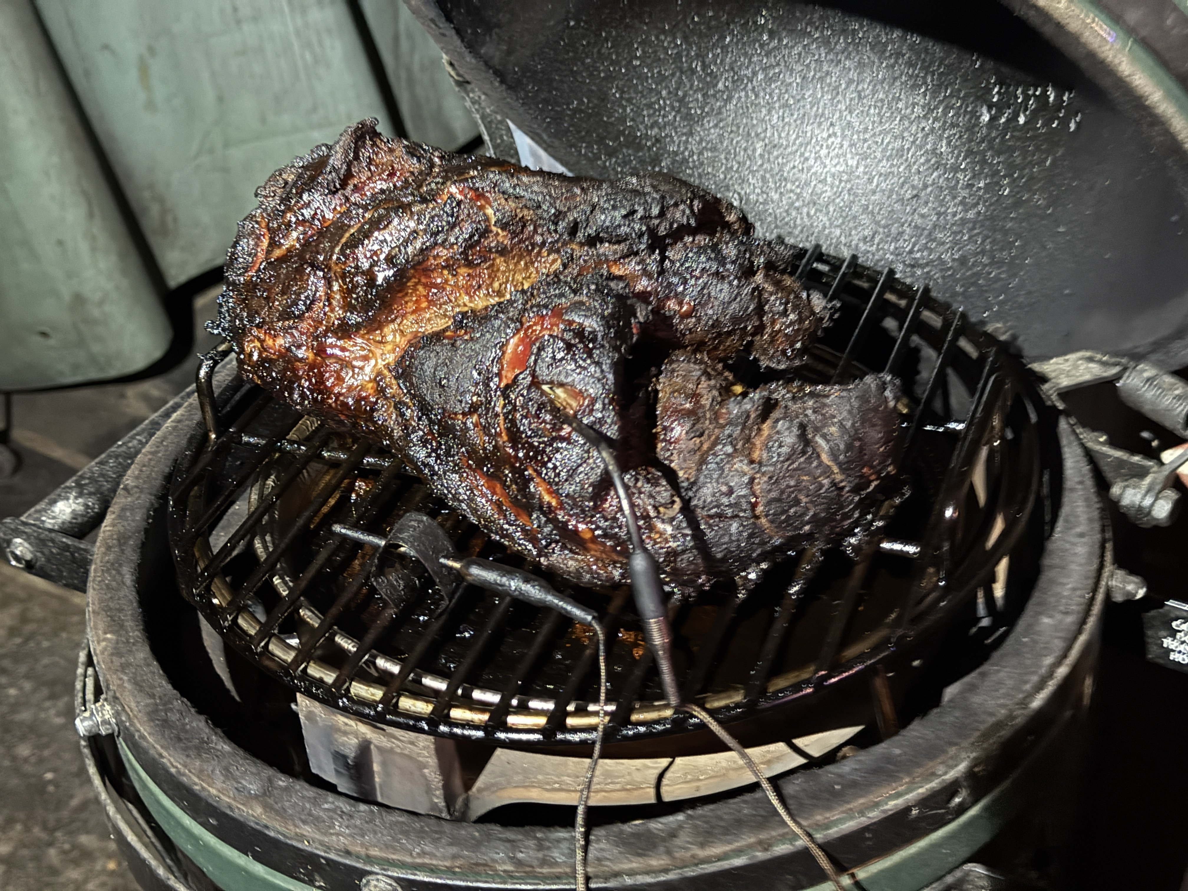 Smoked without peeking for around 9 hours. Went native on vent settings, confirmed with the Thermoworks Smoke grate and meat probe. I love that tool for simple and local cooking. Super reliable.