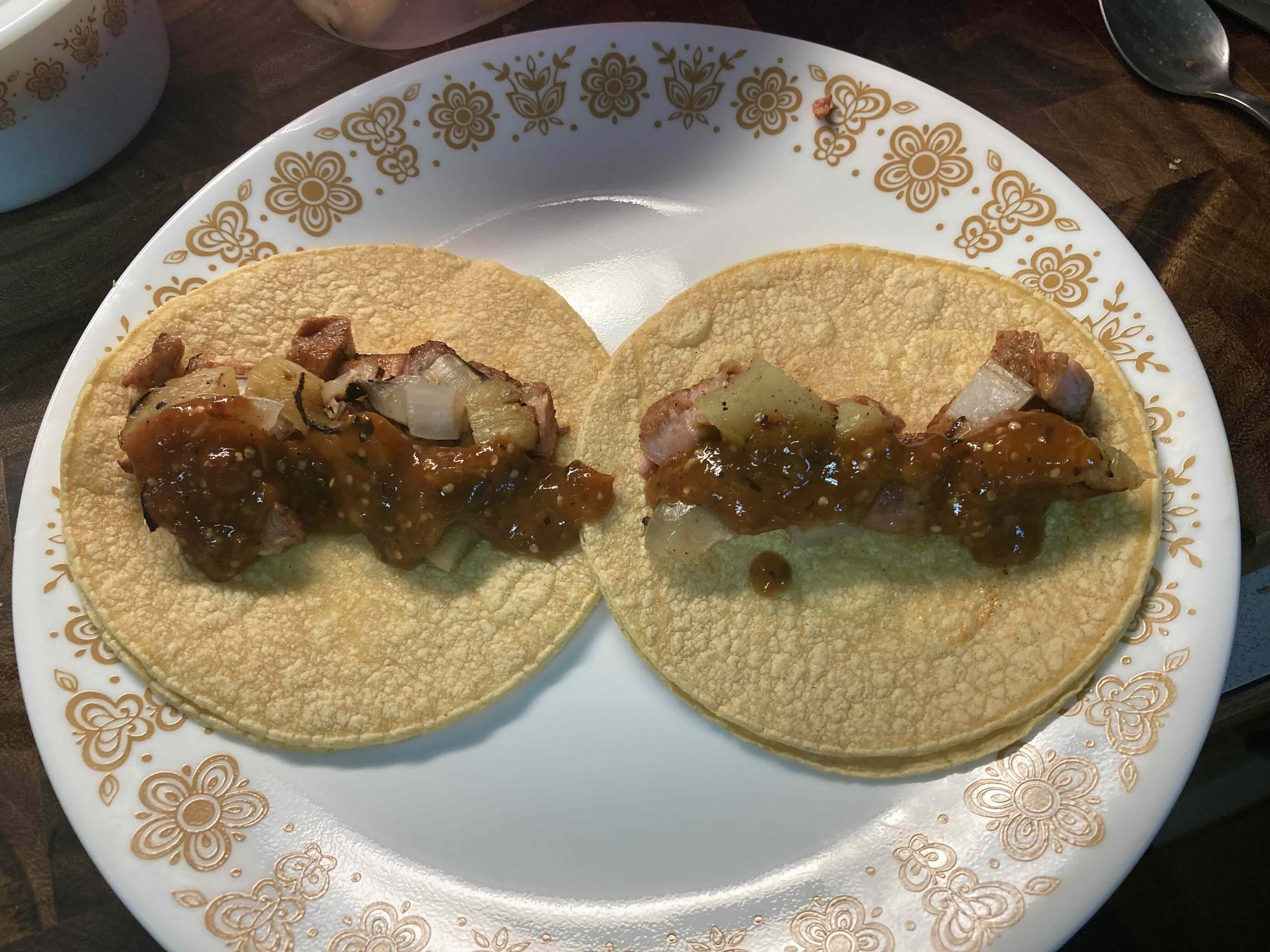 Think I lucked out on the charred bottom/juicy top, pork was good.  Final TaPs were nothing to look at, but delicious and will be doing them again (I can do without the pineapple, but made enough for tacos for two more days.