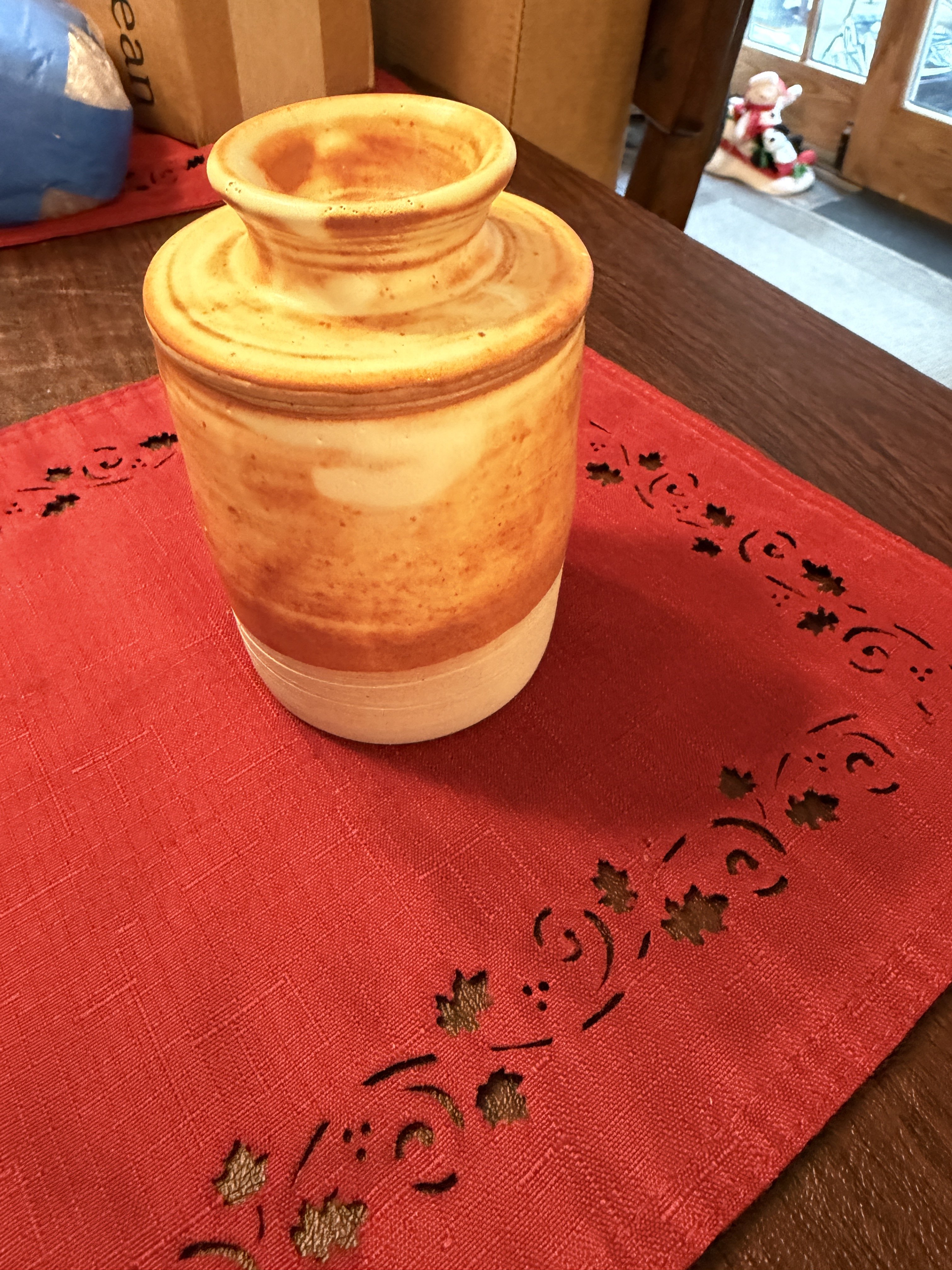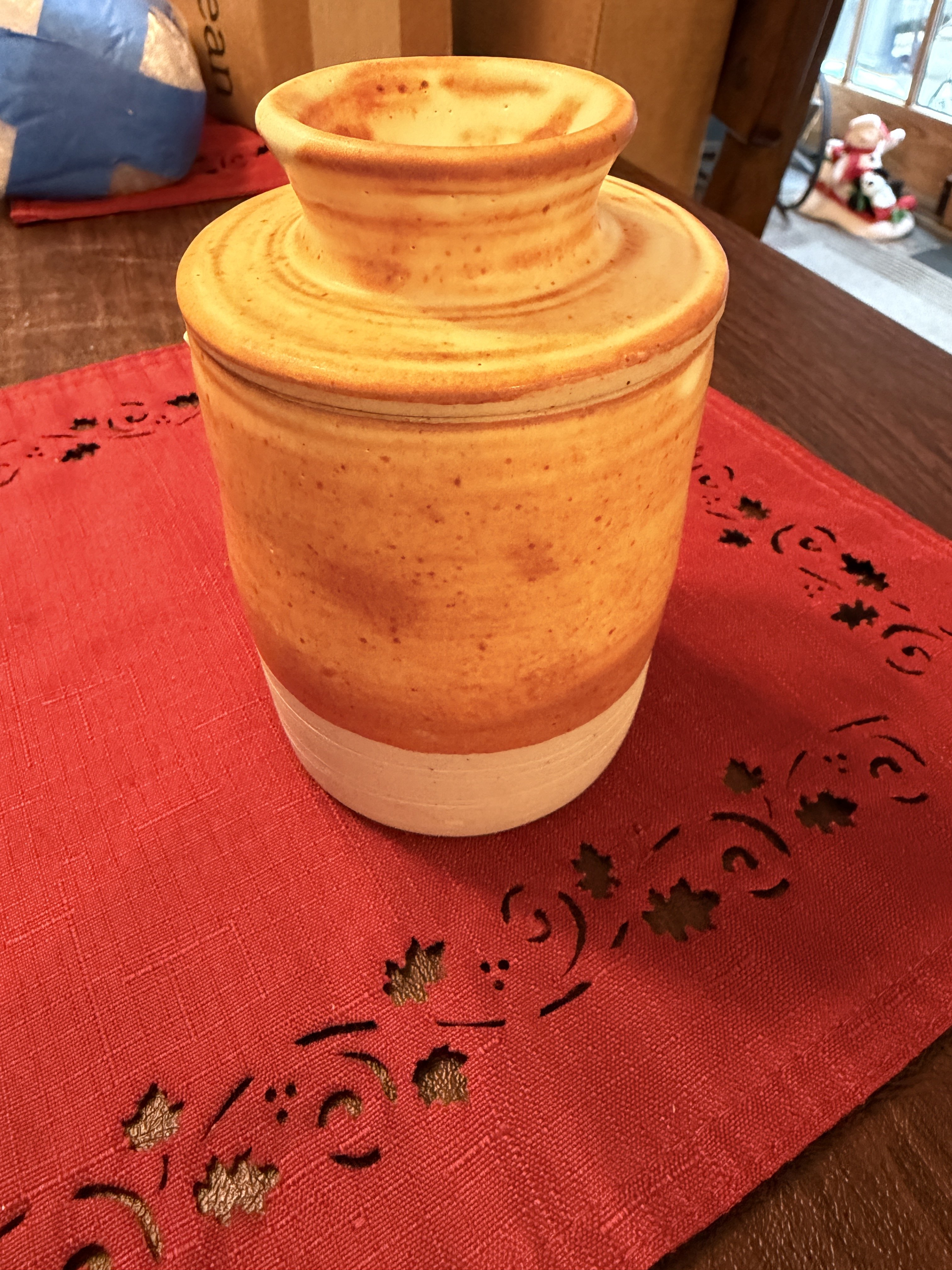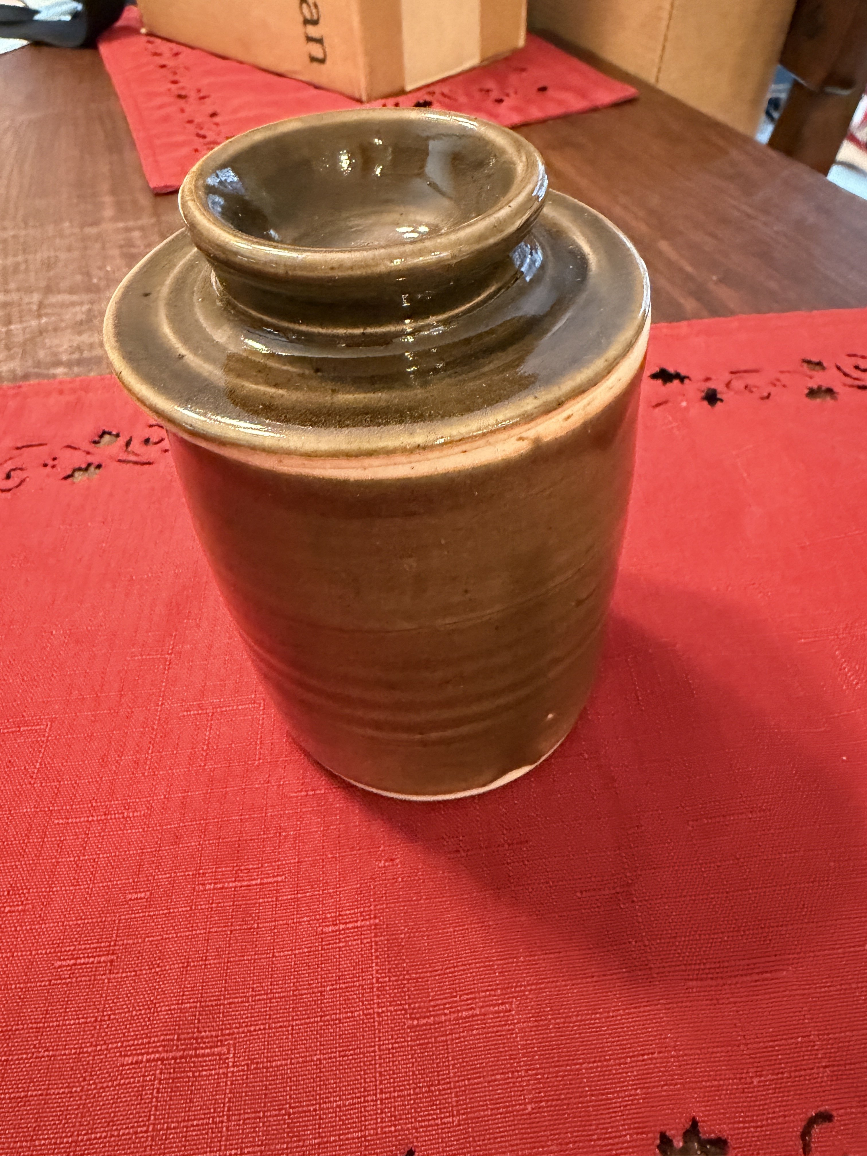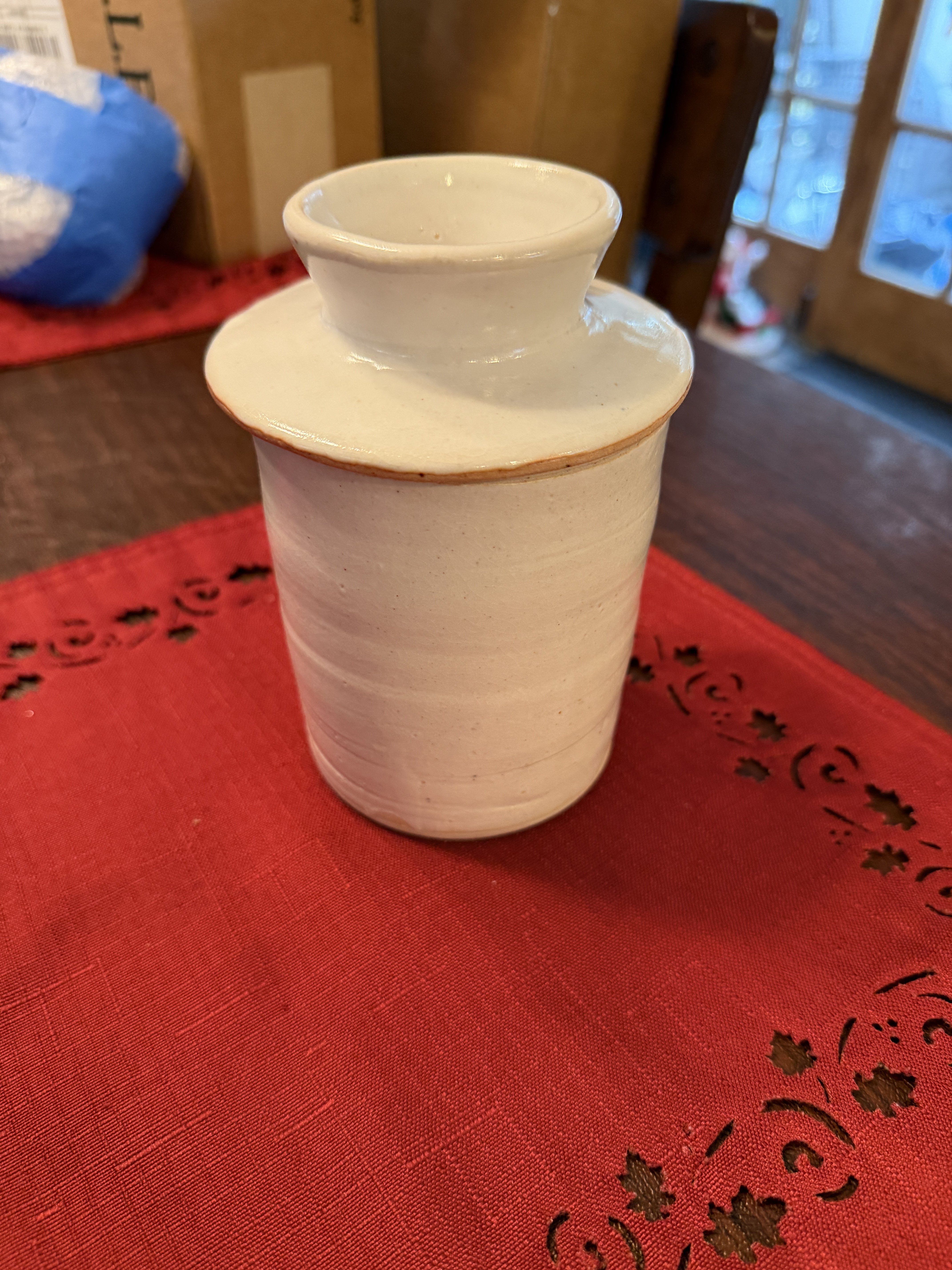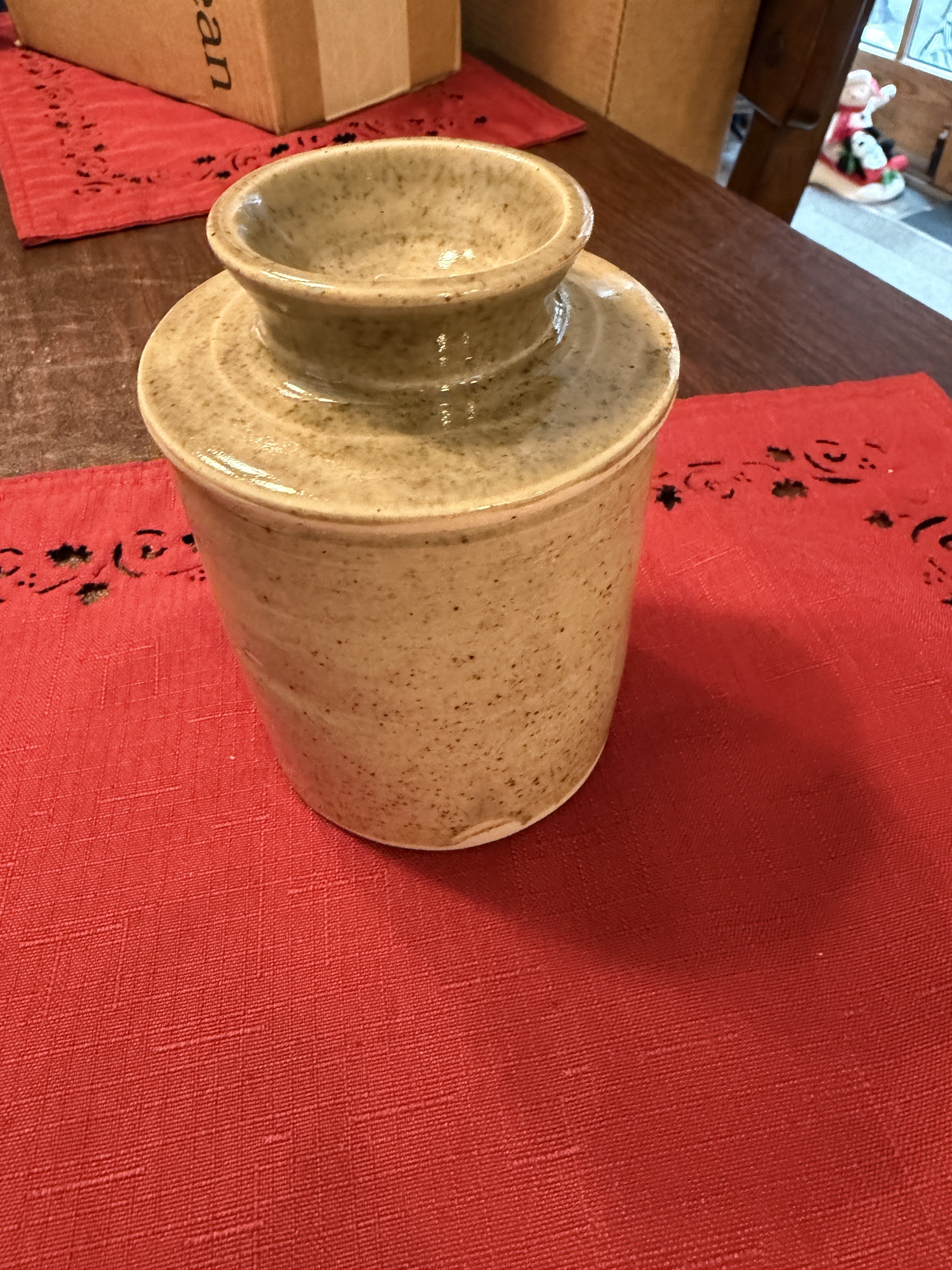 The butter keepers arrived today. My Uncle ended up sending 11 butter keepers in case one broke. They all made it intact so I have one extra at $60 + shipping. The first to respond to this thread gets added to the bottom of the list, which is: