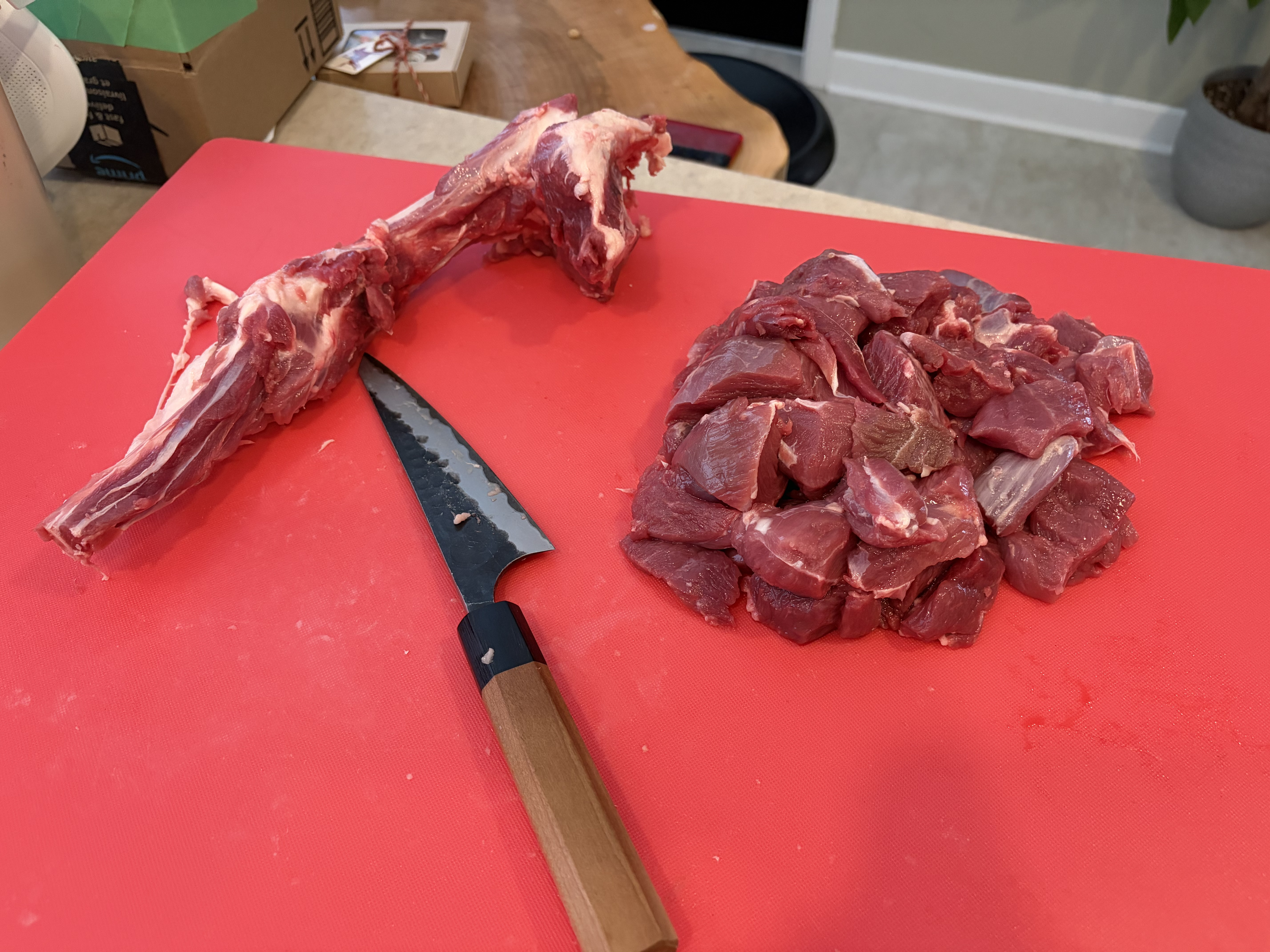 Bought a lamb leg and portioned it out. Worked diligently to remove as much fat as was possible.