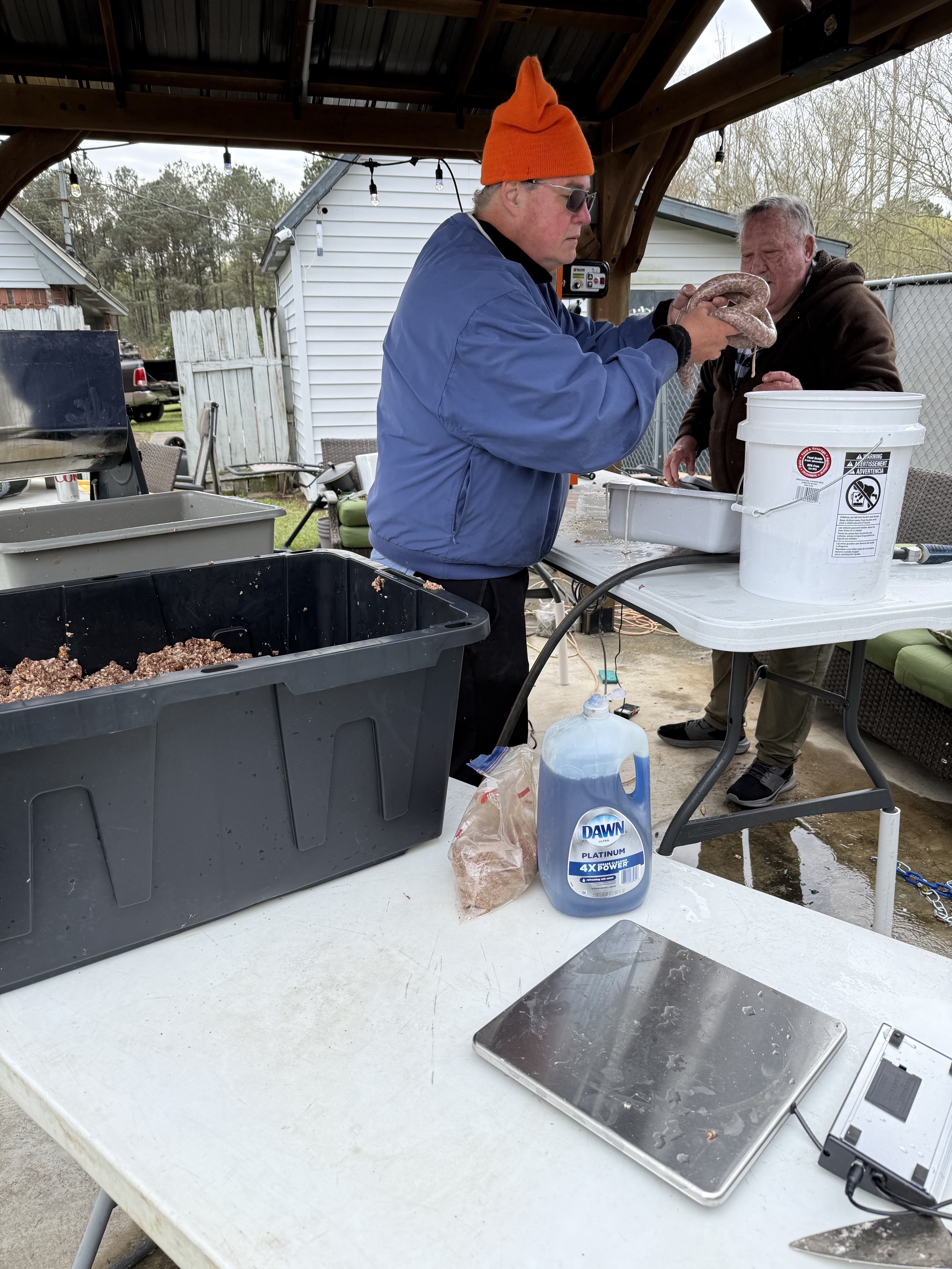 That was deer, pork, and cheese sausage. He made 125 pounds and it’s now in the smokehouse.