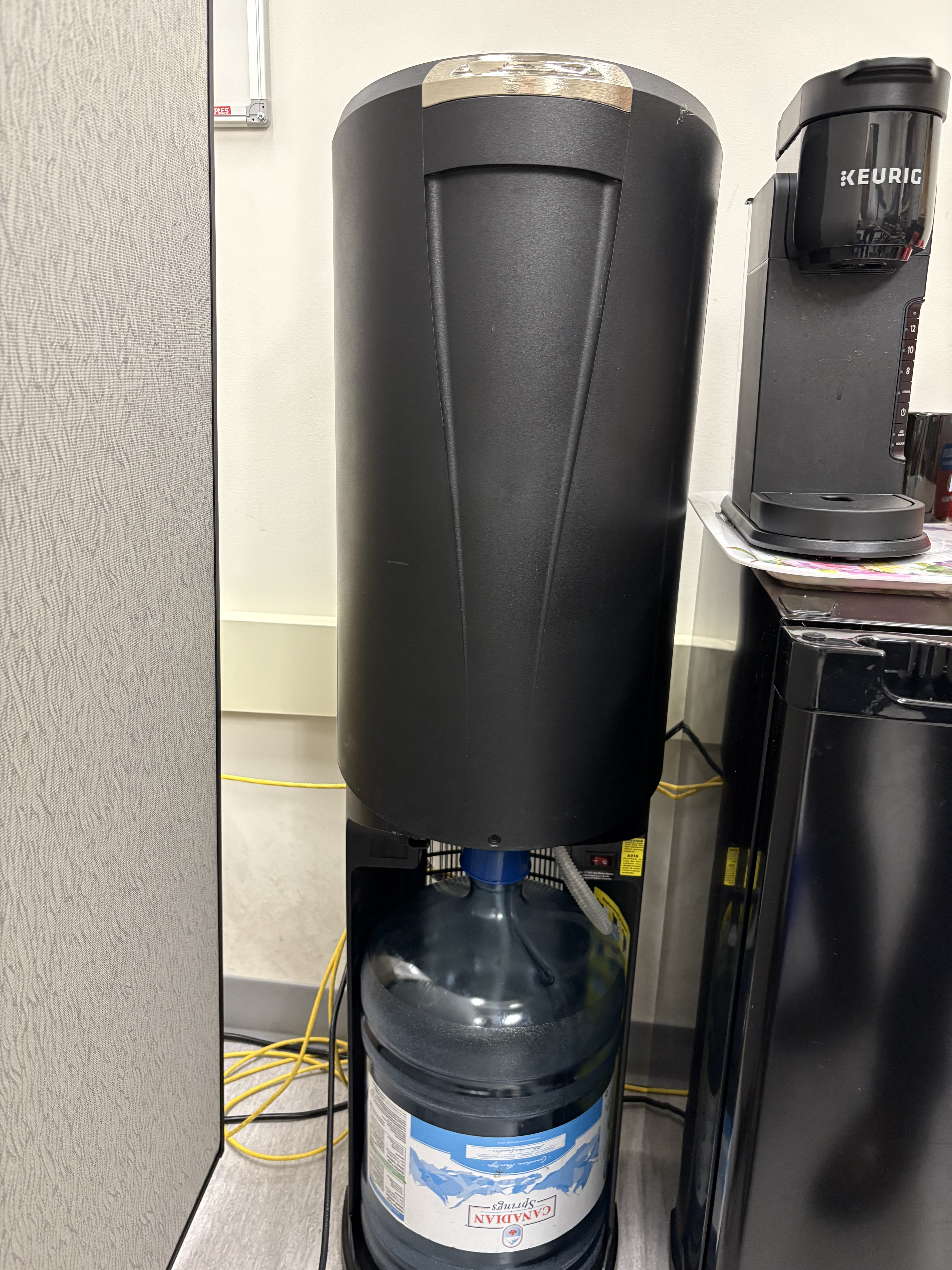 we have had this one for my team since 2021 or so. works well, no issues. bottle on bottom, cover slides up for access. runs hot and cold.