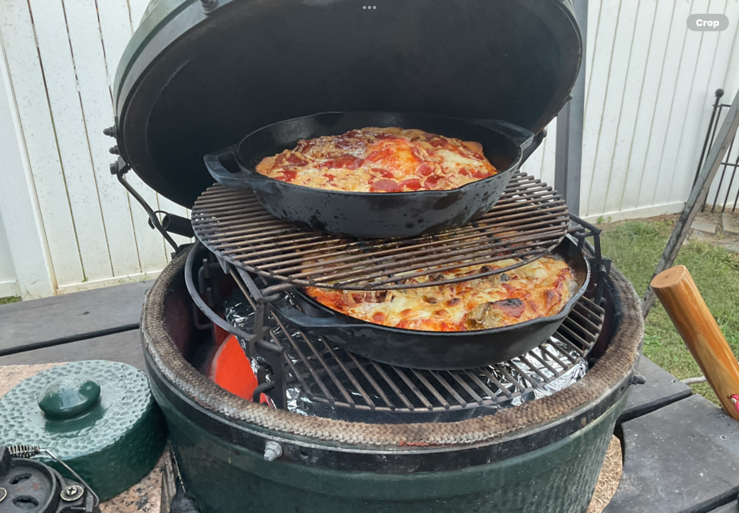 I've got the pizza wedges, the Xpander system and two stones. At the moment I've been cooking two pizzas at the same time, but I'm finding the pizza on the top 'shelf' is not cooking nearly as well/quickly etc as the one below. I'm also wondering if when I open the egg very quickly to put the top pizza on, am I losing all the heat I've spent an hour building up?