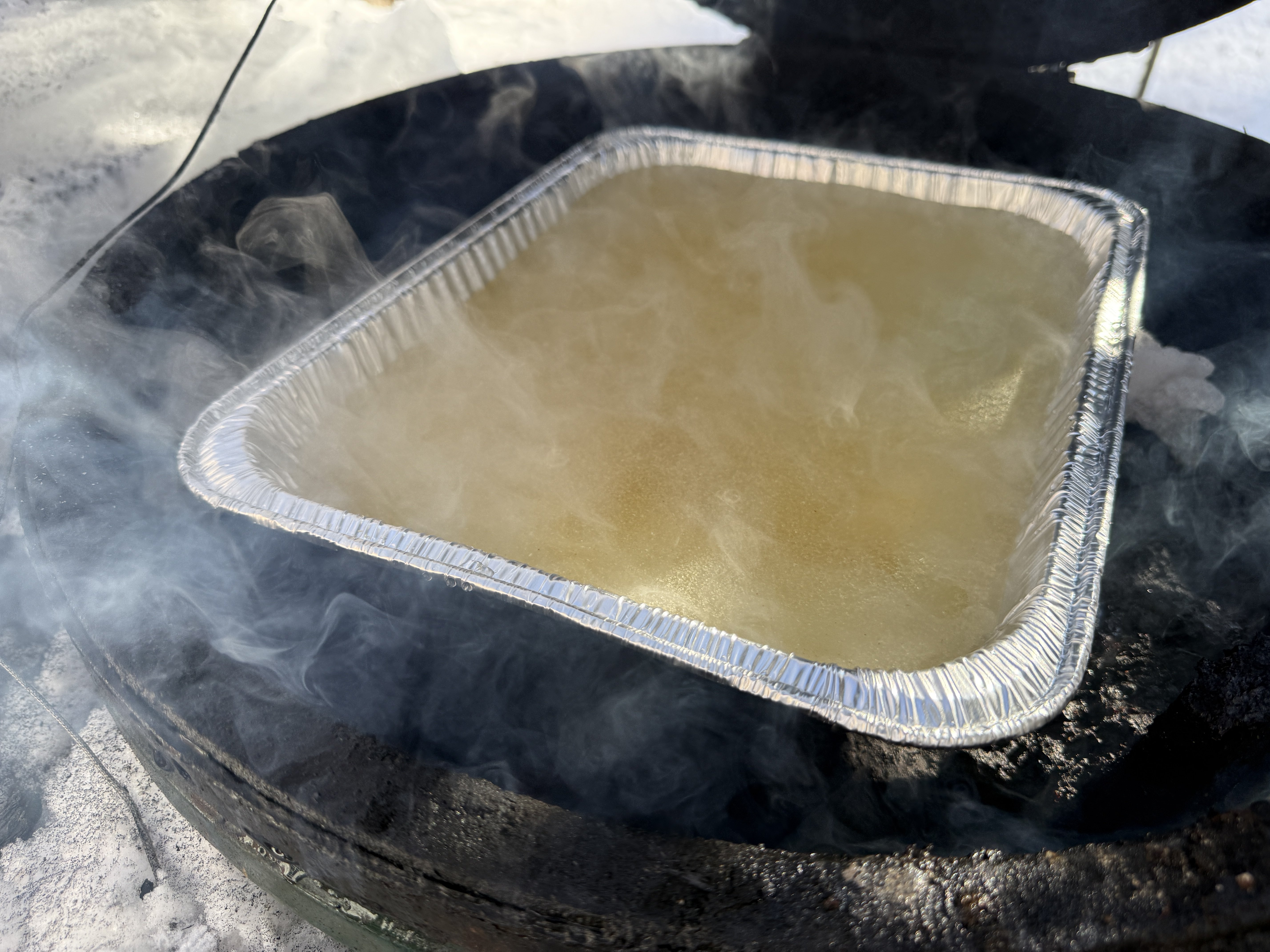 The SmokeWare cap needs a warming fire to loosen. Chunk of hickory in the gap does the trick.