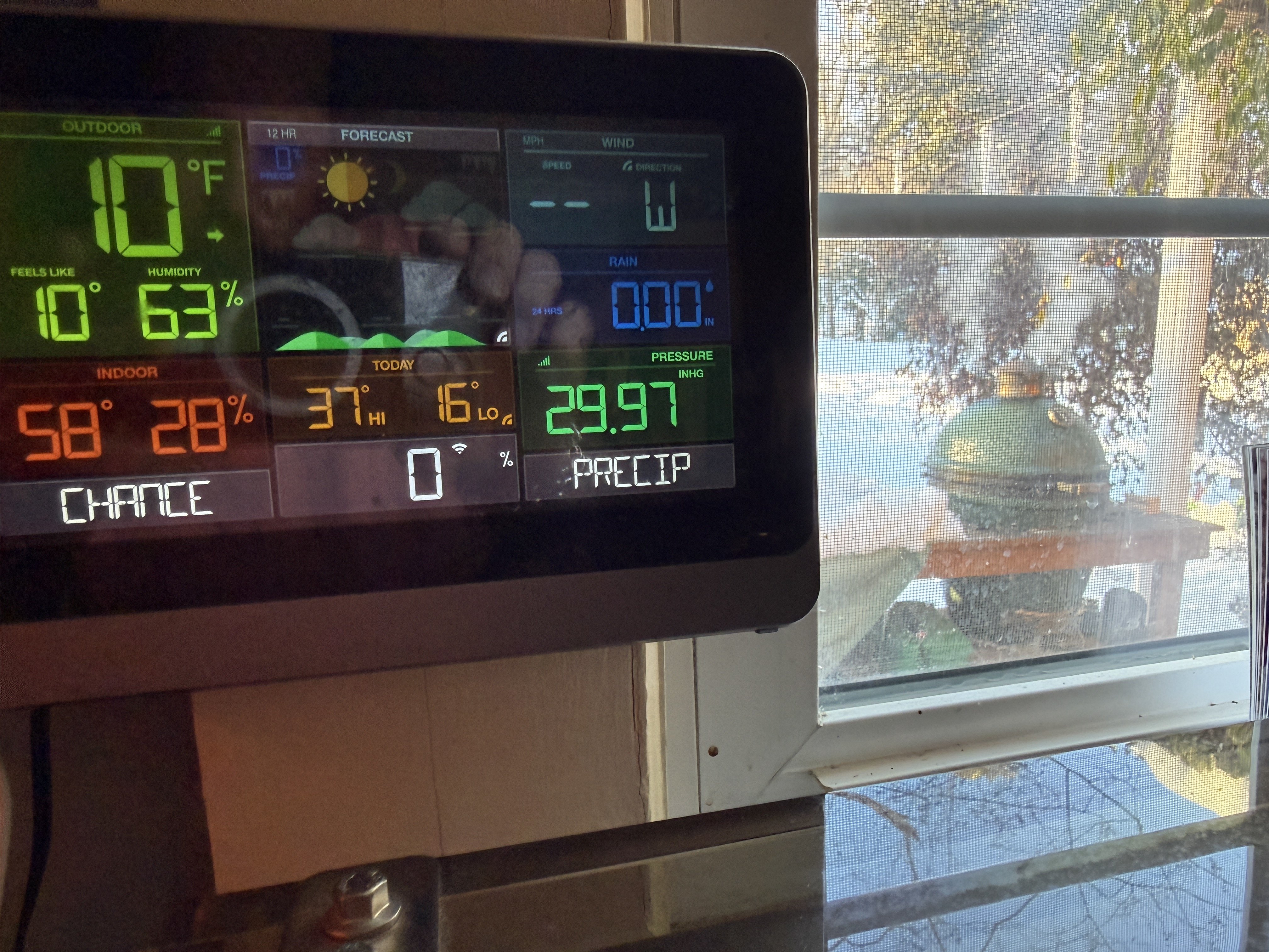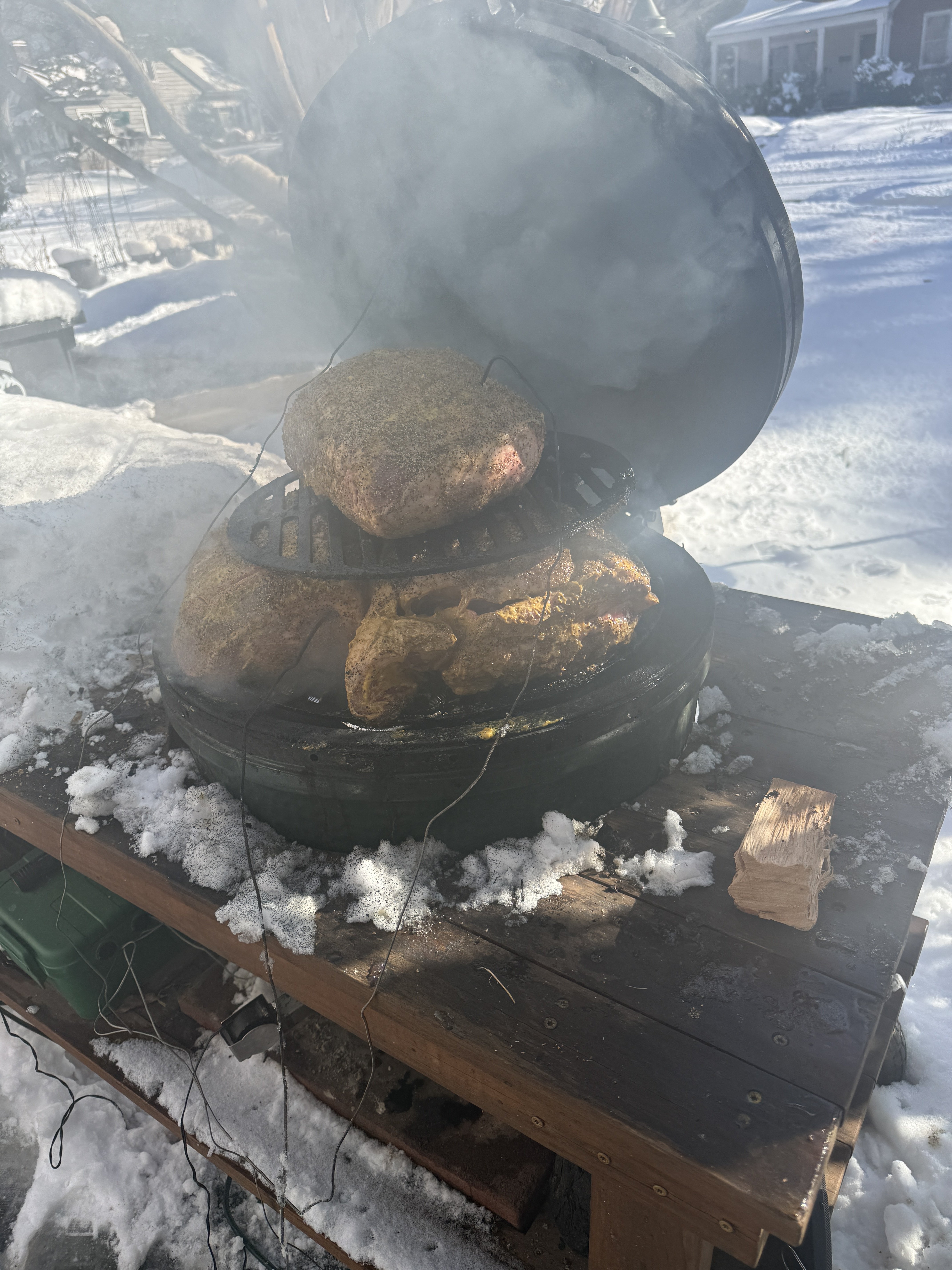 when we get bad (for us) weather, I sometimes make it a point to fire the LBGE up - just to prove to the non-believers that the machine shrugs off ALL KINDS of bad weather like the Hall of Fame shrugging off Belichick …