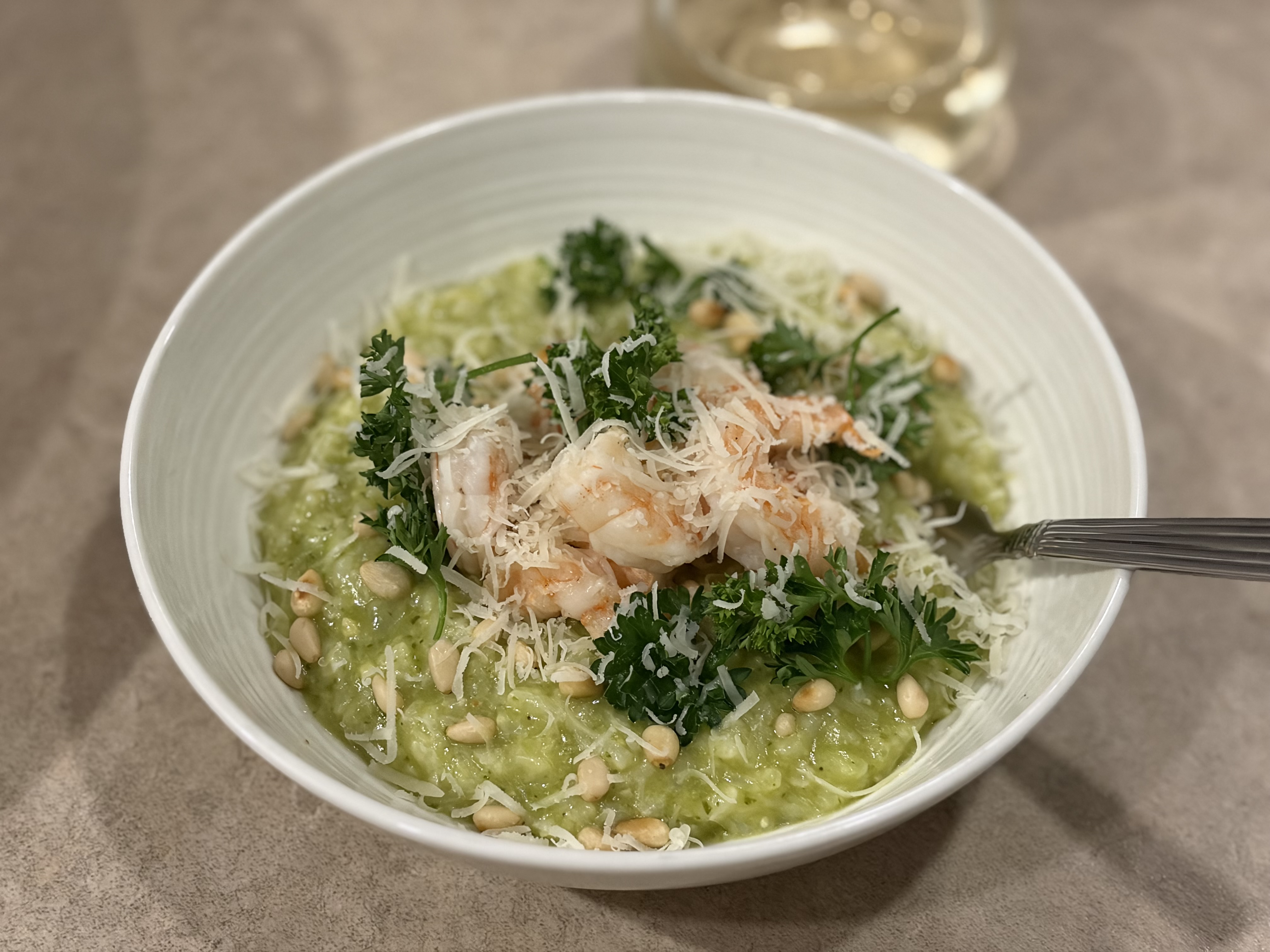 Taking some inspiration from our very own @JohnInCarolina. Recipe at https://www.platingsandpairings.com/pesto-risotto/. As the saying goes “Good musicians write; Great musicians steal”.