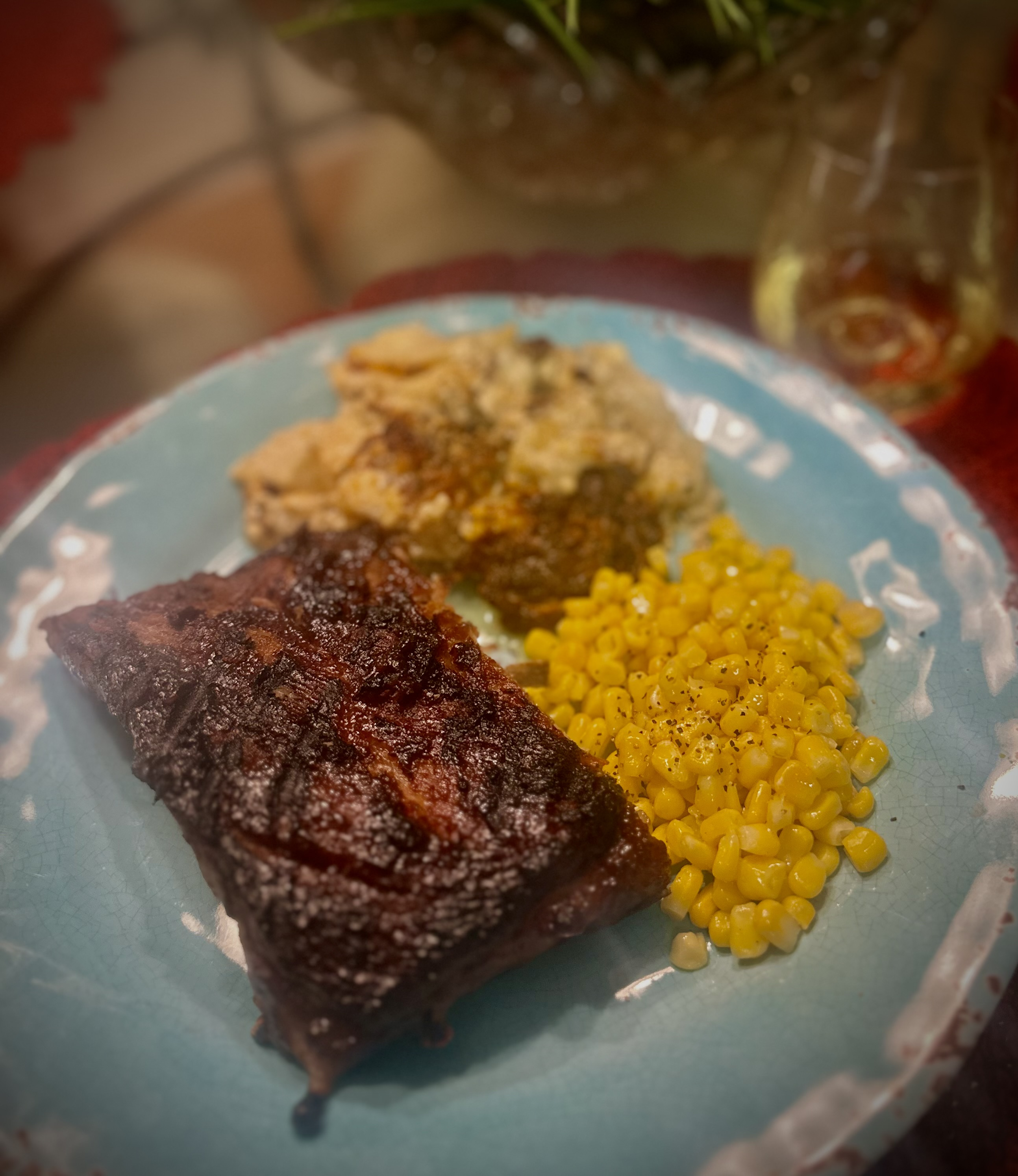 Sometimes I just don’t have time to watch the barbecue all day and get the perfect rack of ribs. This seems to be a great way to do them with very little effort. I seasoned them and roasted them in the oven until they are nice and tender, then take them out, let them cool down and cover them with whatever your choice of sauce is. After that, get some coals going with a nice smoking wood and sear them up. It’s a