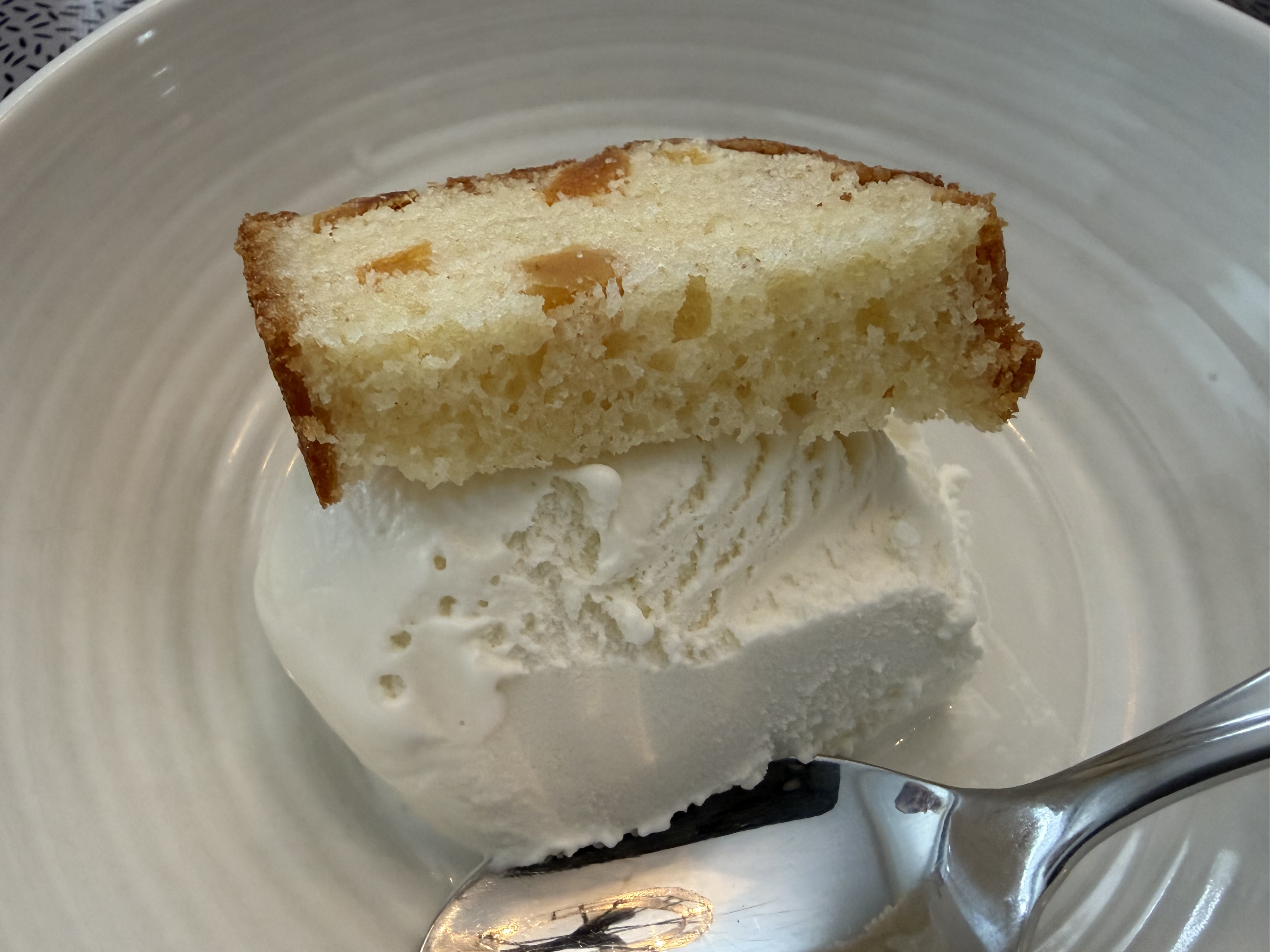 Dessert was a contribution from my mother-in-law. Apricot cake (homemade) and vanilla ice cream.