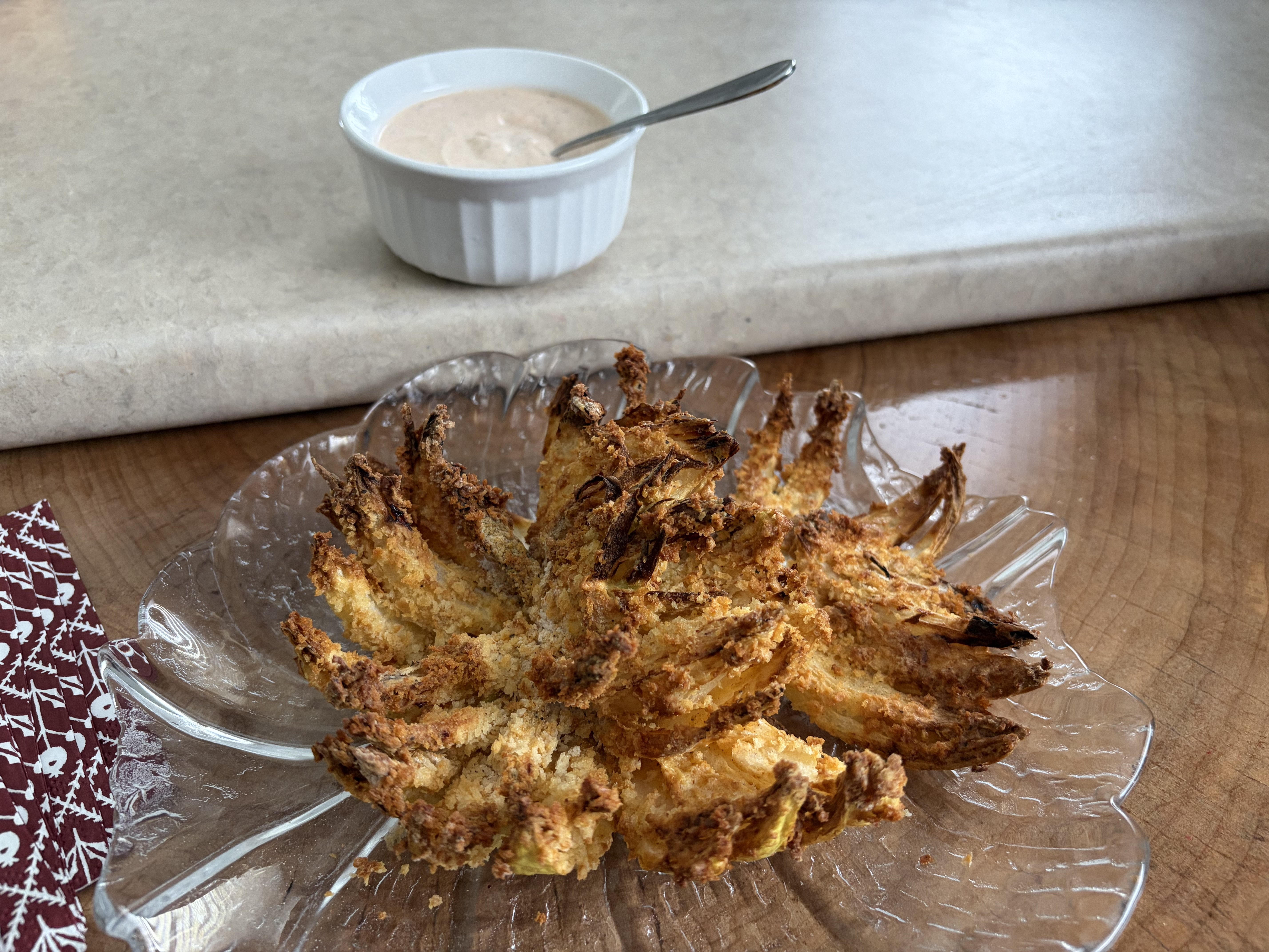 Also wanted to make an (unrelated) app, so decided to try my hand at a blooming onion or two in the air fryer. First time, and would make again!