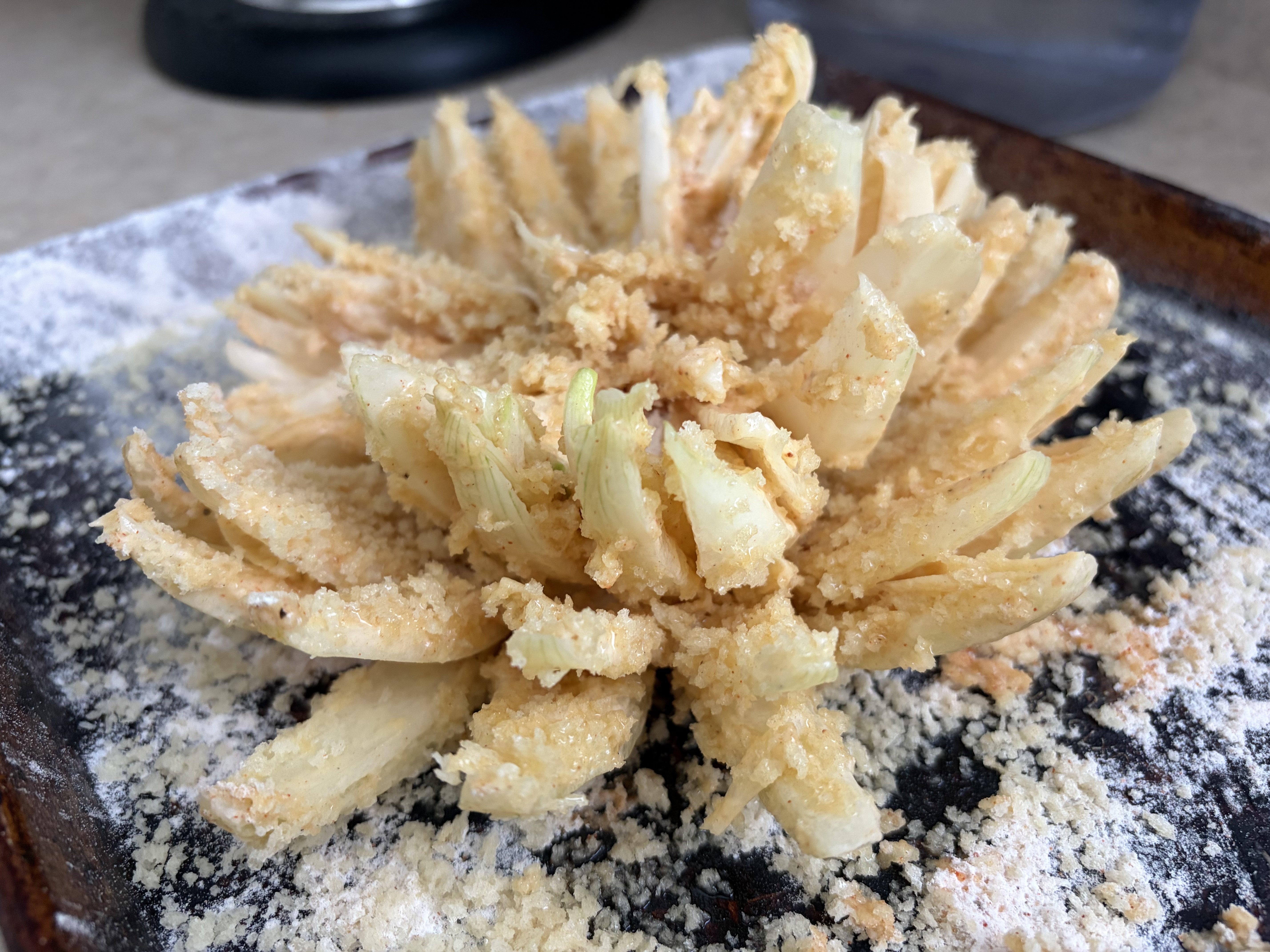Thanks, strange timing, but I had a craving for a blooming onion.  Nostalgia from « Le Bifthèque » maybe.