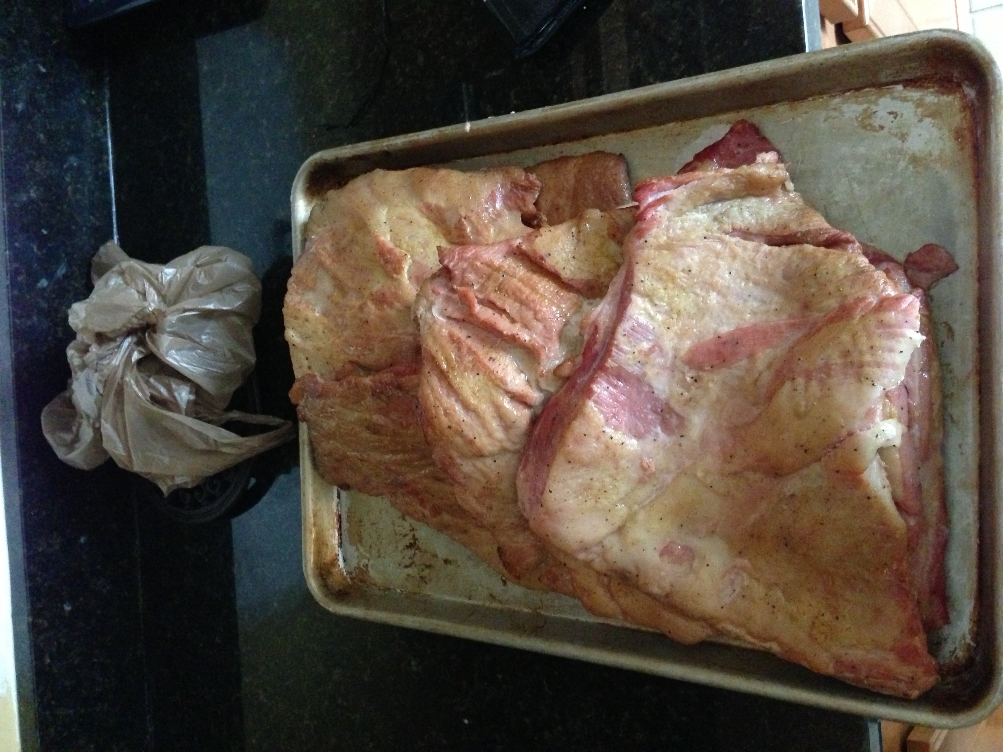Hi, all! Quick question while on the subject! I'm in the process of making bacon as well- 5 lbs of Tamshire pork belly, cured with #1, salt, sugar and spices. Trick is I'm cold smoking it, rather than hot smoking (I have a ProQ cold smoke generator, and it's sitting in my BGE with the plate-setter in) and I have no idea how long it needs to cold-smoke until it's smoke-saturated! How long d'ja think it needs to smoke before it's ready to pull off?
