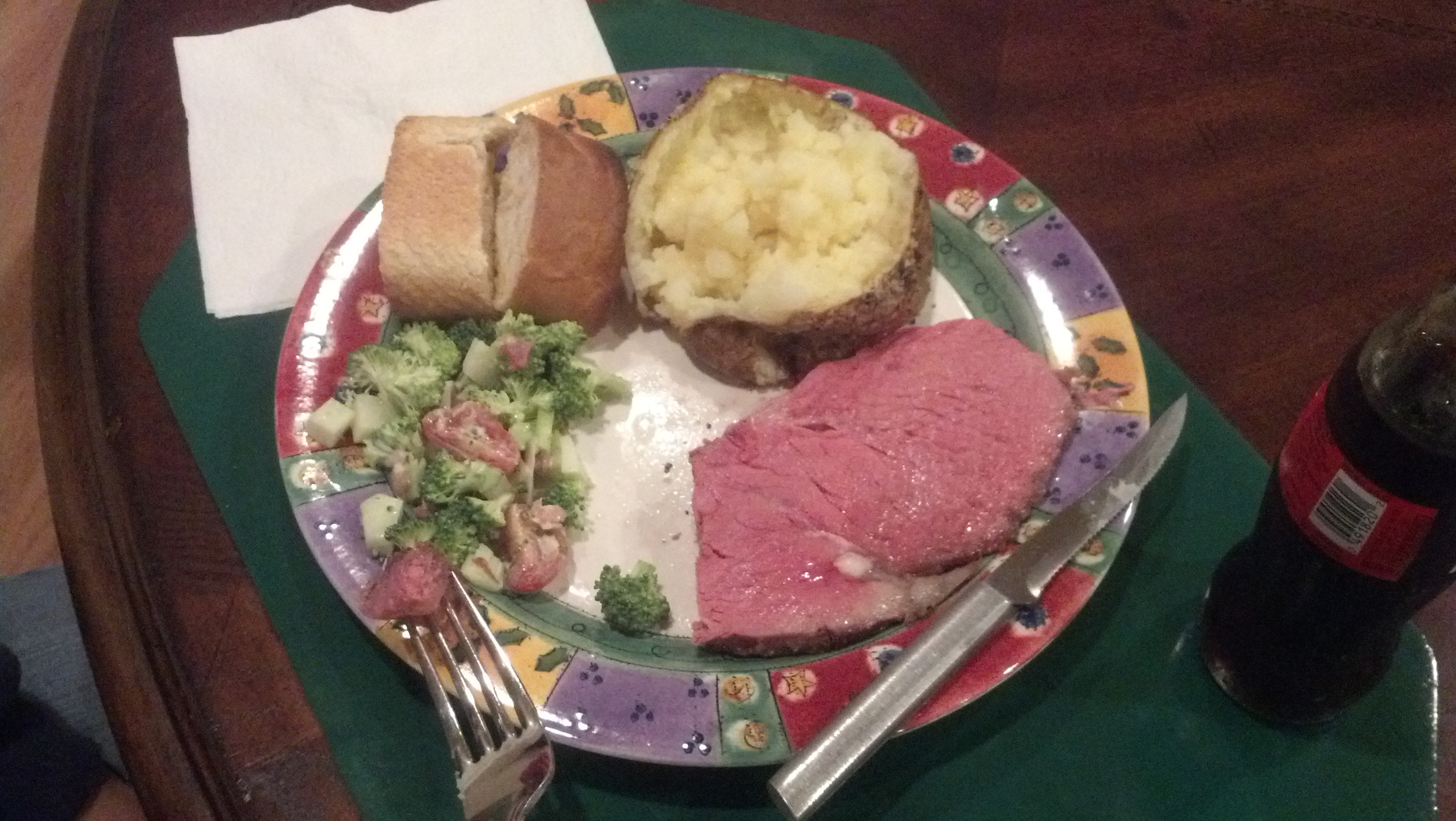 45min s into our first prime rib. the rain just turned to frozen precipitation, not snow, but not rain.