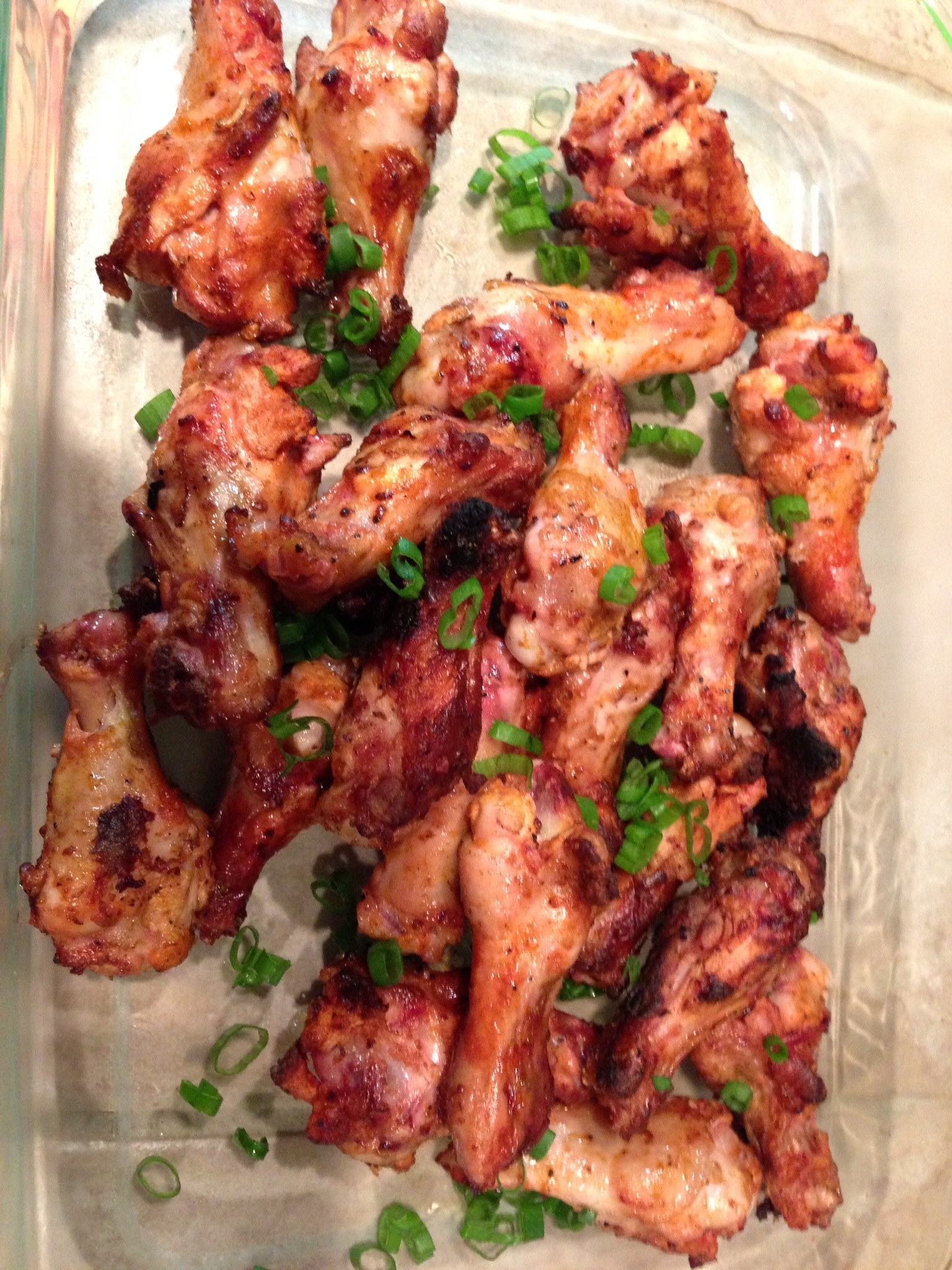 I normally don't like marinated or wet rubbed wings because the moisture makes it difficult to get good crisp skin. I like my wings to be as dry as possible before going on the grill.