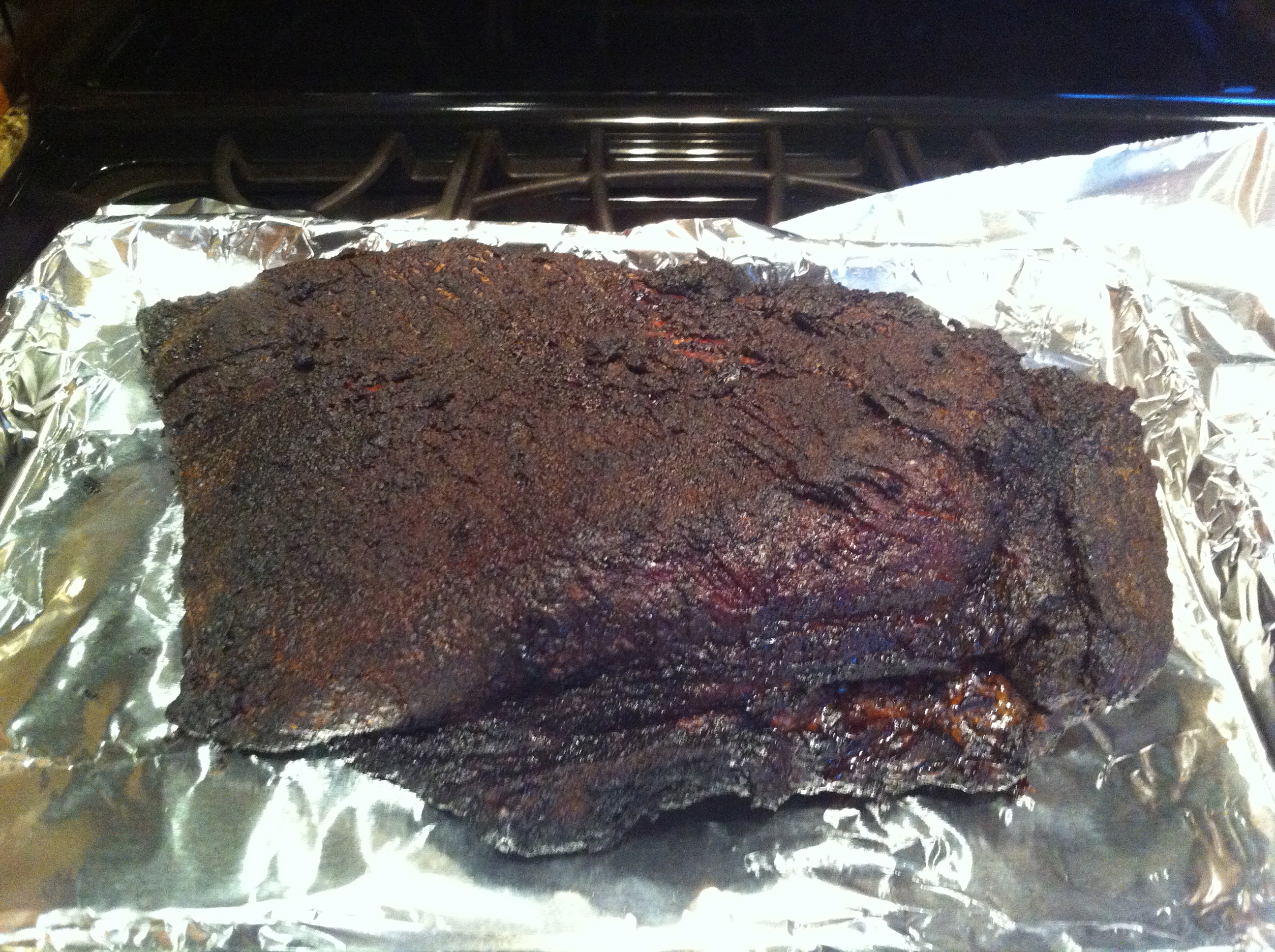 Just removed this guy at 205º. Cooked about 15.5 hours at roughly 240º dome temp. Where/how do I cut to remove the tip to put back on the egg for burnt ends??? It's resting now and I will FTC the flat.