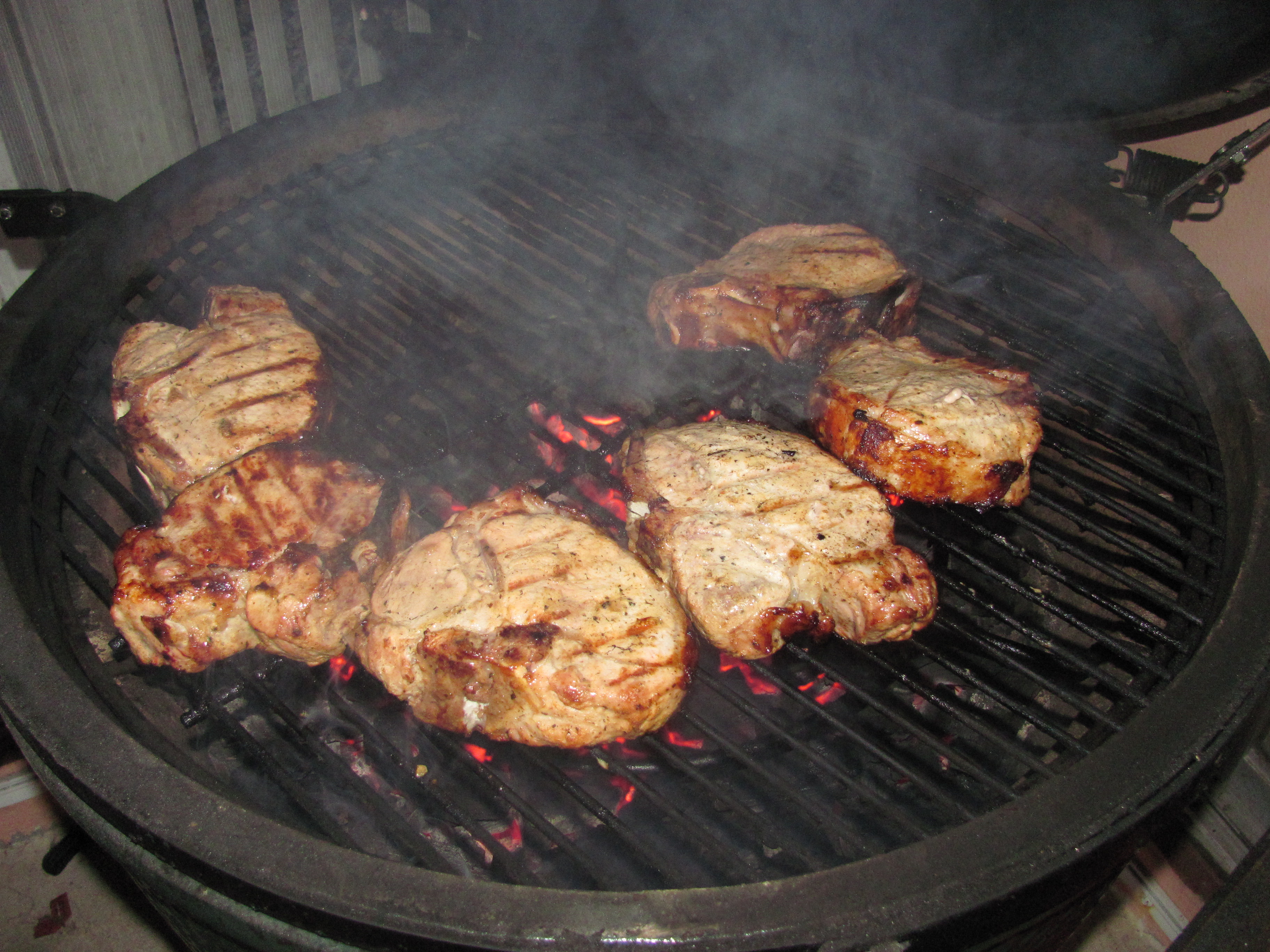 Thick chops marinated in Dichickos Garlic.  Cooked until the internal was 130.