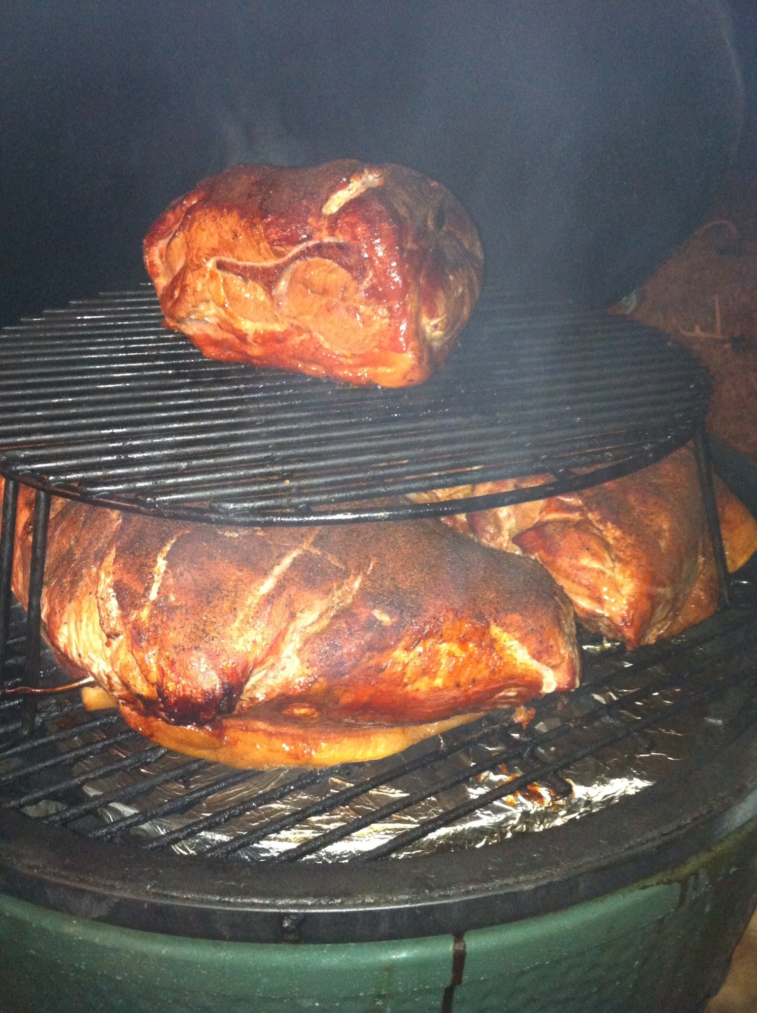 Eh, maybe, maybe not. Depends on some weather and how the meat responds. The shoulders are about 18 lbs a piece. Usually takes app 14 hrs when I cook them.