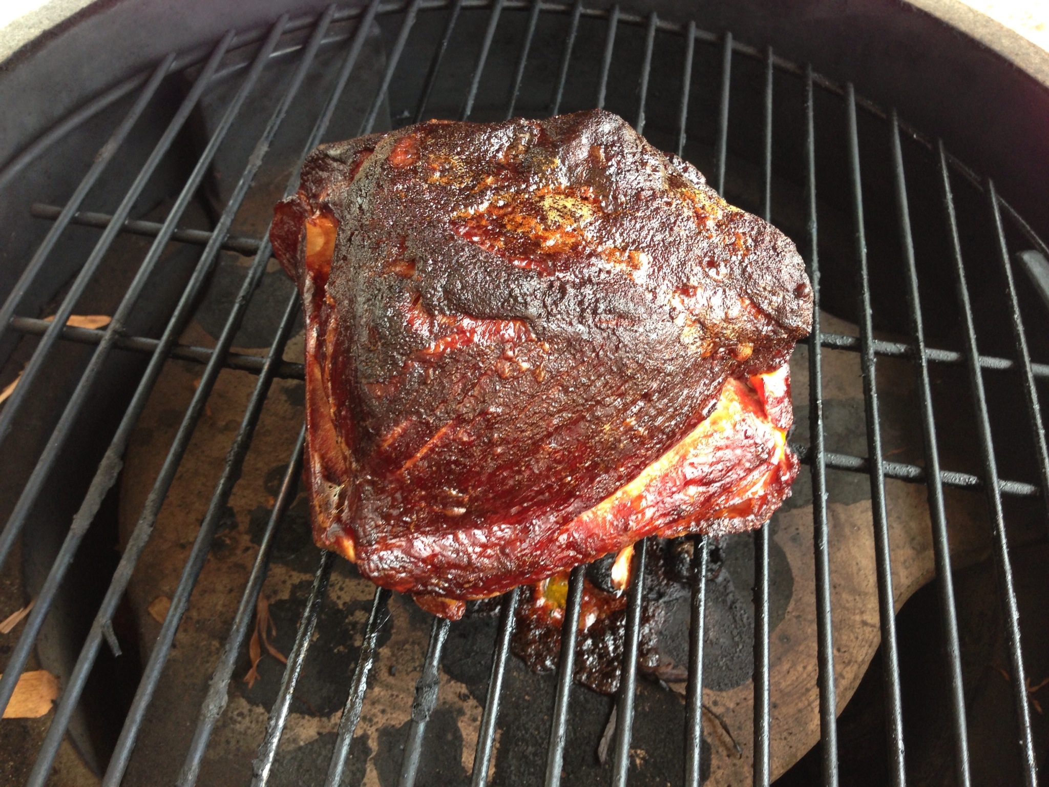 This time turned out just perfect. Put butt on straight out of refrigerator (plus some homemade rub) with lots of chunks and chips scattered around the lump. Egg ended up stabilizing around 300 dome. Had planned to go turbo, but cooked suprisingly quickly and didn't need to. Pulled off at 195 internal, FTC'ed for three hours, pulled, and served with lightly toasted buns and slaw. Easily my best pulled pork. Super moist and tender. I tried with and without BBQ sauce and prefer it plain.