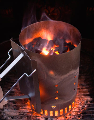 FILL up a Webber charcoal chimney and light it.