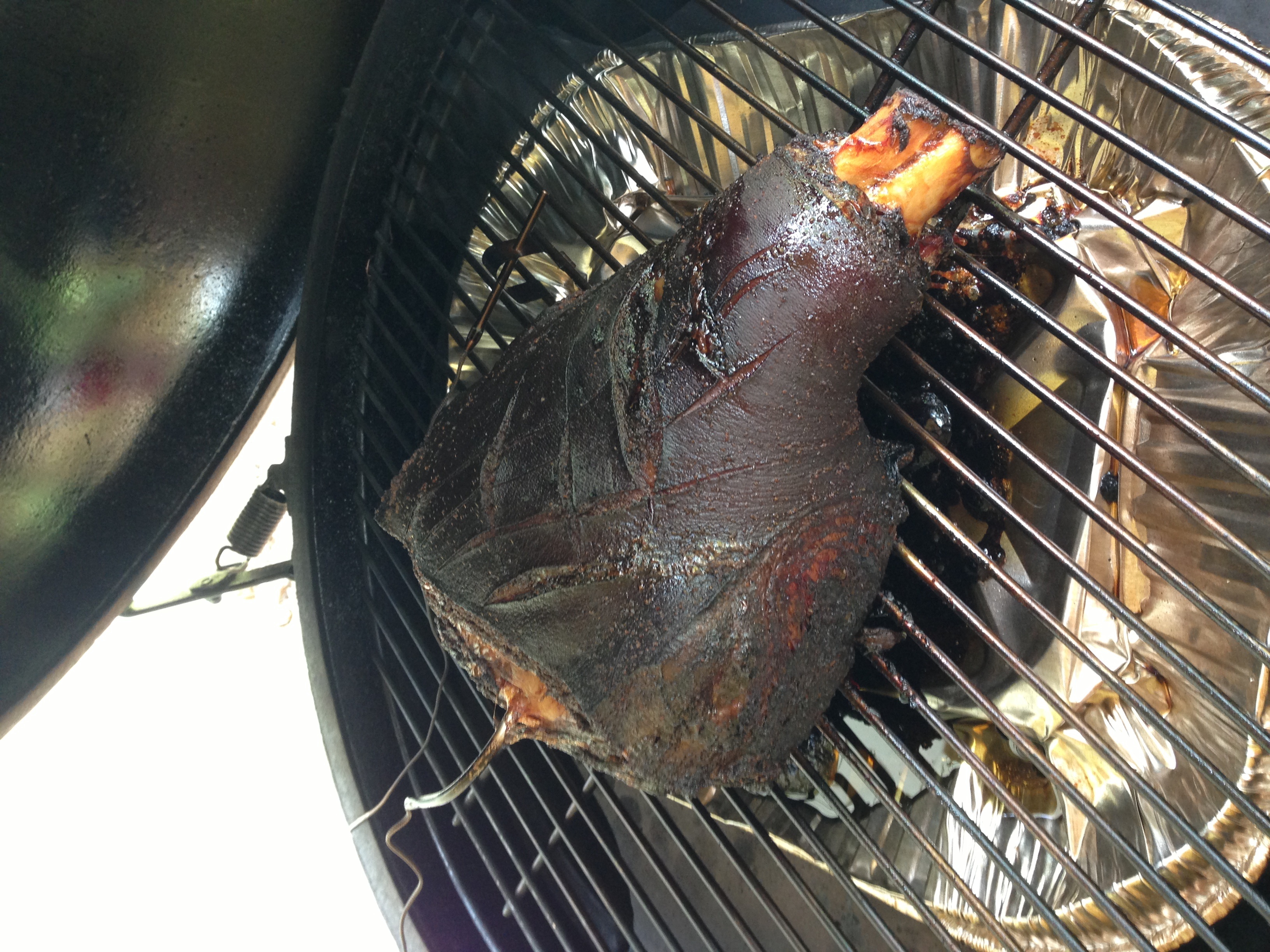 Success! Well, it looks good anyway. It stayed at 198 internal temp for a couple hours, and then I turned the egg up to about 245 degrees grate temp. Pulled it off at 205 degrees internal temp. 18.75 hours of cooking time. Egg has plenty of coals left around the edges. Wrapped in lots of foil and putting it in cooler for dinner time.