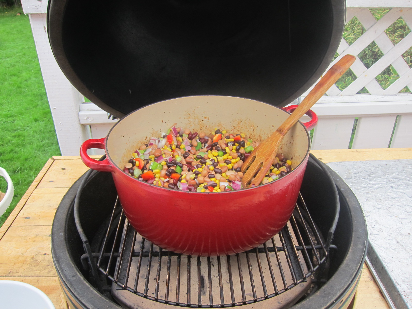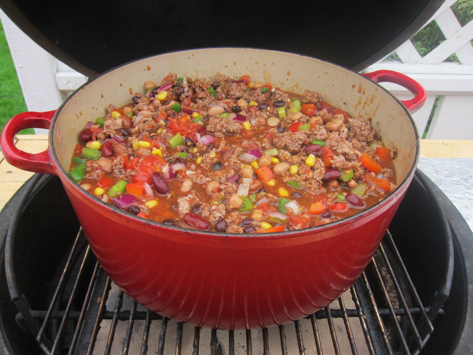 Doing my first pot of chili on the egg today.Decided to try cow-lick from this site.Man it needs alot of ingredients.
