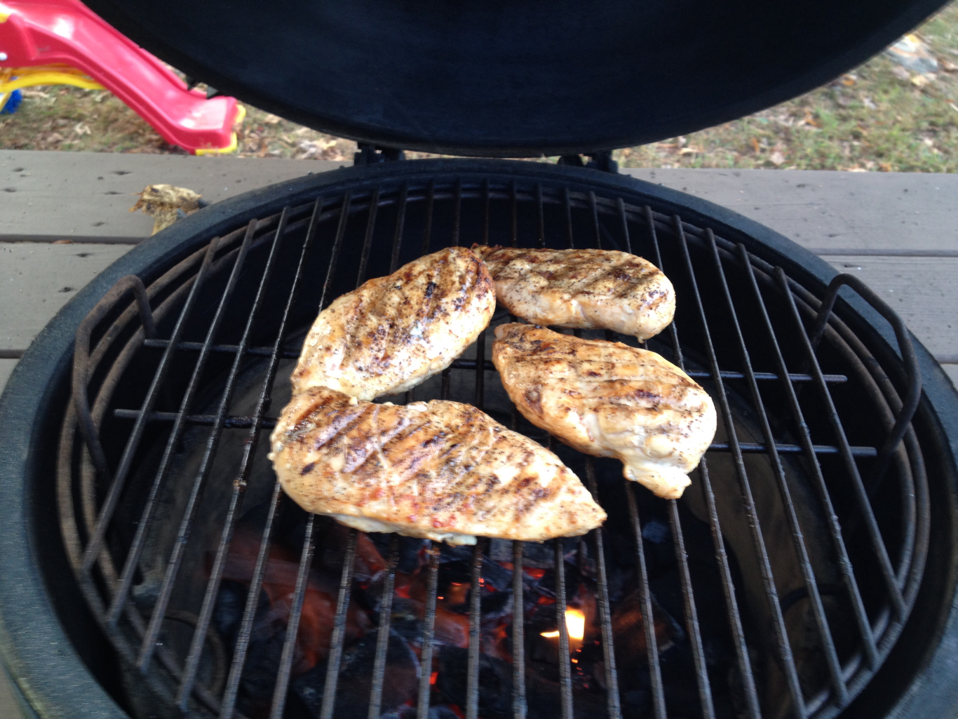 Threw some chicken breasts on (before the meatloaf) for tomorrow nights supper. Gonna do tacos and Southwestern style Egg Rolls. Done the breasts 350 raised (woo2) direct with cherry for smoke.