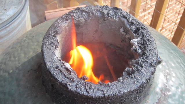 Ok I pulled the thermometer and I'm an hour into the burn. Looks like hell inside the dome with that ring of fire. It is one of the early ceramic ones.My other clay ones broke years priorJefferson .GA.Been egging since 1985 on a medium egg