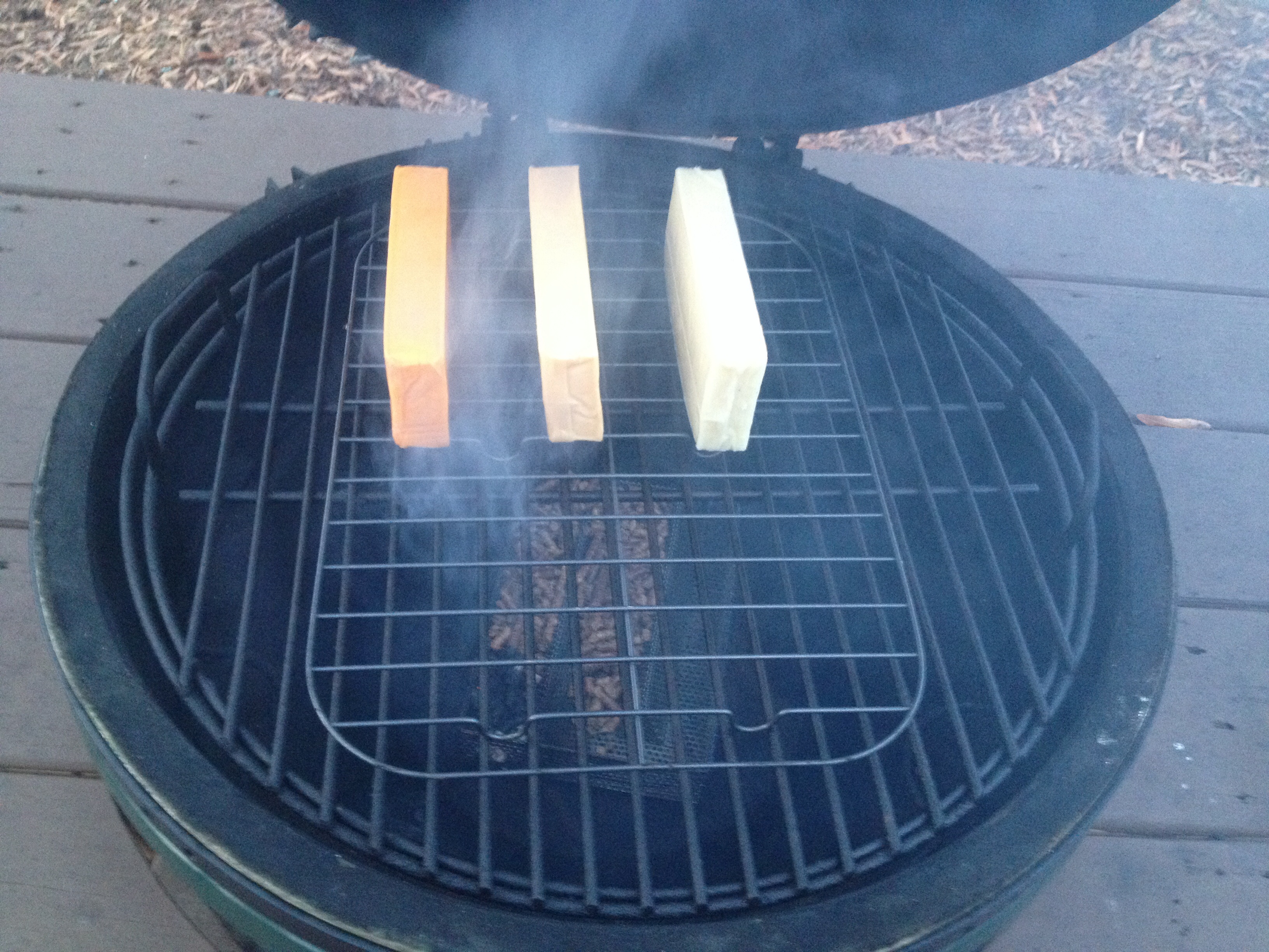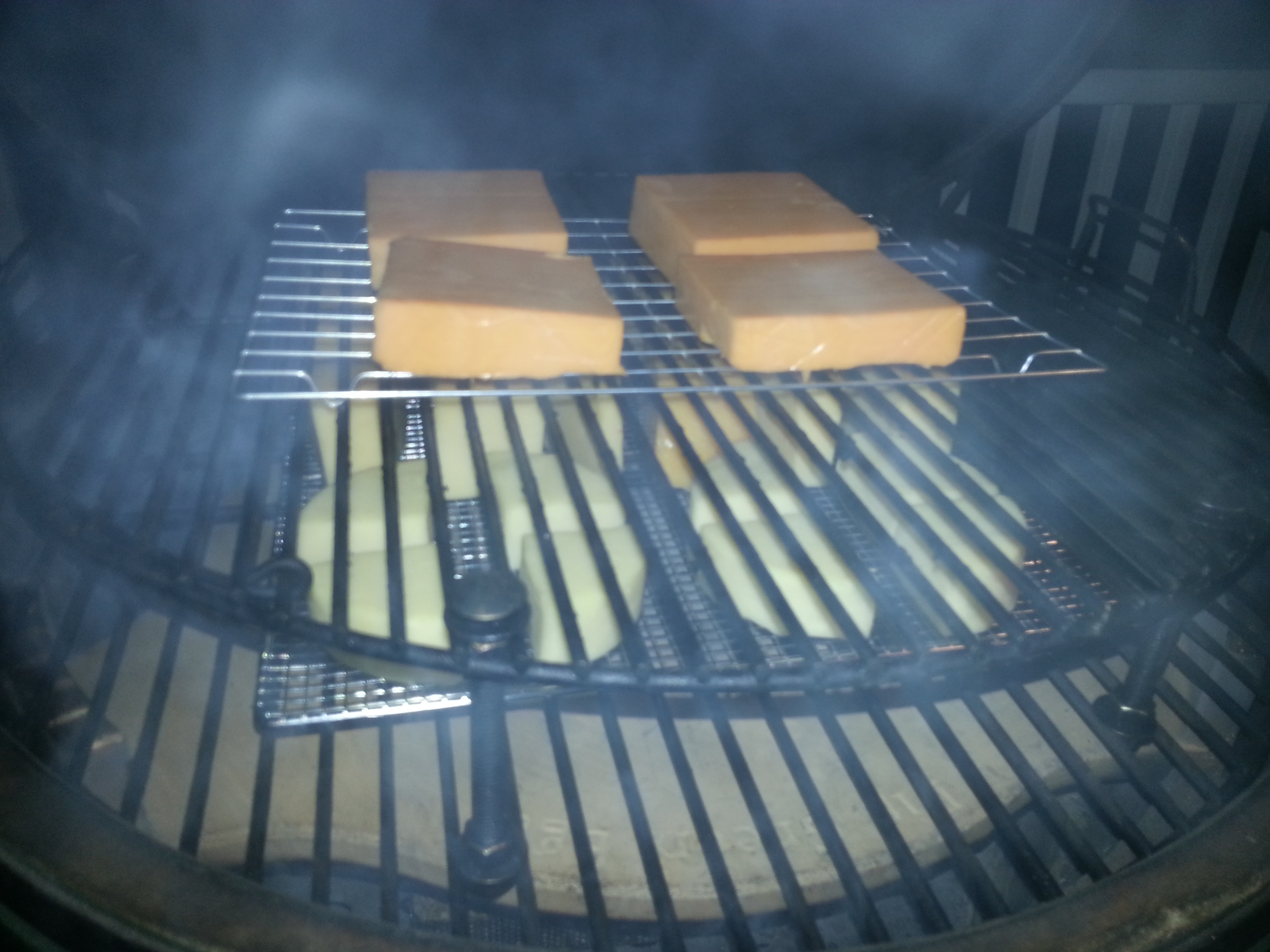 Got this thing in the mail yesterday and just had to try it out. I have 8 ounces each of medium cheddar, Gouda, and mozzarella. Plan to let it smoke about 2 hours. At 30 minutes in I plan to throw on some boiled eggs and let them go for 90 minutes and then make deviled eggs. Thanks to @fletcherflam for that idea. I'm using a hickory and cherry mix.