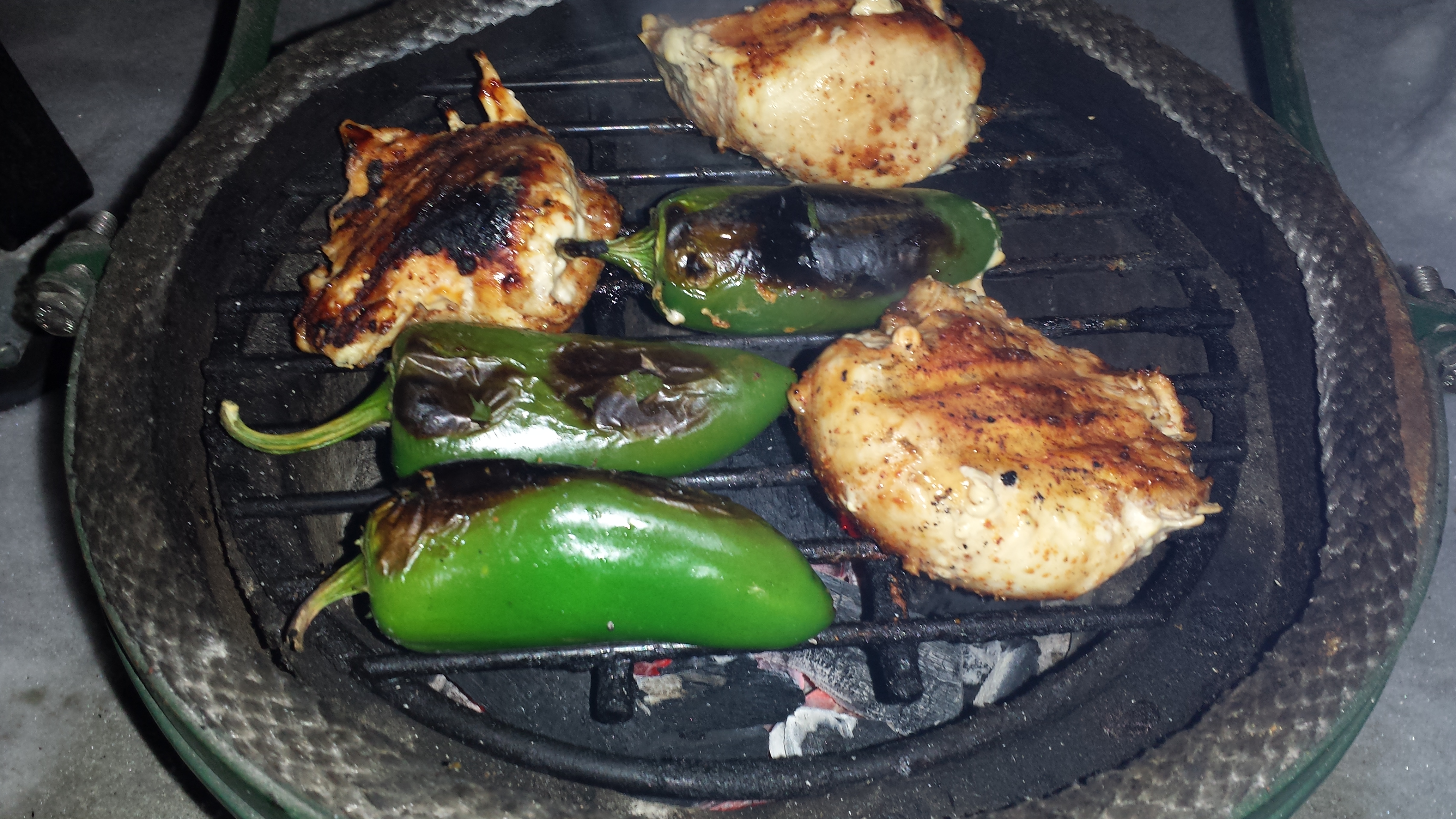 I grilled the chicken and jalapeños on the mini and fired up the large in the meantime. Shredded the chicken once off the mini and diced the jalapeños. Tossed everything else together in the pot and placed in the large. Smoked with some apple.