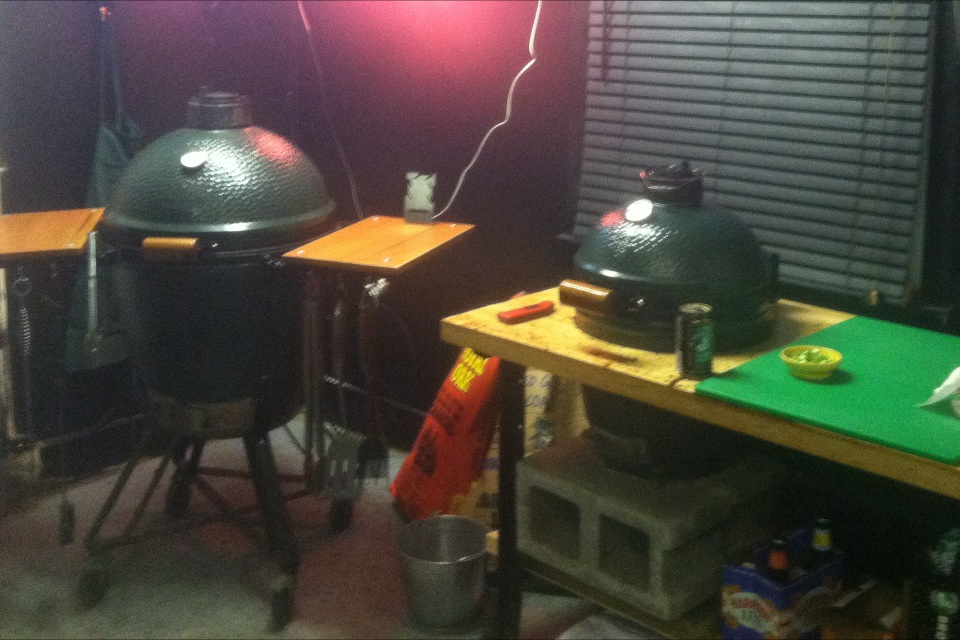 I have long said the perfect combo is a large and a small egg and I still firmly believe that! please don't get hung up that you have to have both going at the same time or' you shouldn't have two eggs! I have 4 eggs and only once had 3 going at the same time and never all 4!awm said:My awesome mother in law got me a small egg to accompany my large. Now I just got to decide if I need to build a new table or just get a best to hold me over for now. Can you guys give me some ideas on when y'all use 2 eggs for one cook.As for a table vs. a nest here is a pix of my large and small in a table I made. Note the fold down work area on the side so I can still get a standard cover on my eggs. Also note the drawer under the small which serves as a riser and storage.BTW YOU have a GREAT mother in law!!!