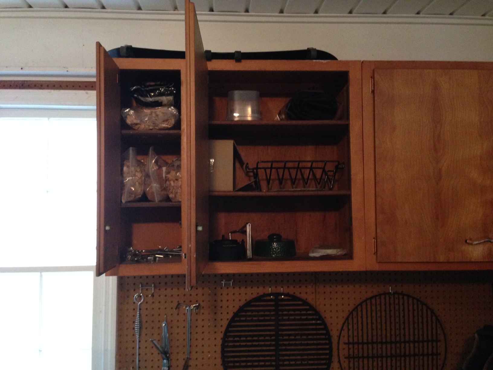 My stuff is spread all over the place. PS lives in the egg most of the time. Extra grate, rib rack, stone, etc are on the shelves of my table - I built with two shelves for the room and I have some to spare. Lump and smoking wood in the garage, spices and rubs on a shelf in the basement. Cast iron pieces between the kitchen and the basement. With the weather and seasons here, storing it all together near the egg is not an option.XLBGE, Small BGE, Homebrew and GuitarsRochester, NY