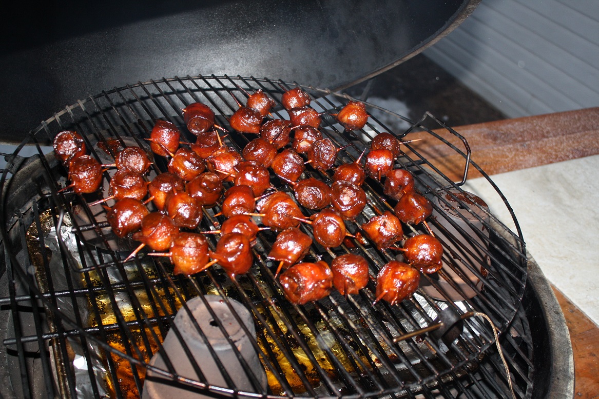 Cooked 44 of these these on a raised grate at 350 indirect. Used frozen mini meatballs for the core - much easier prep than Pig Shots.
