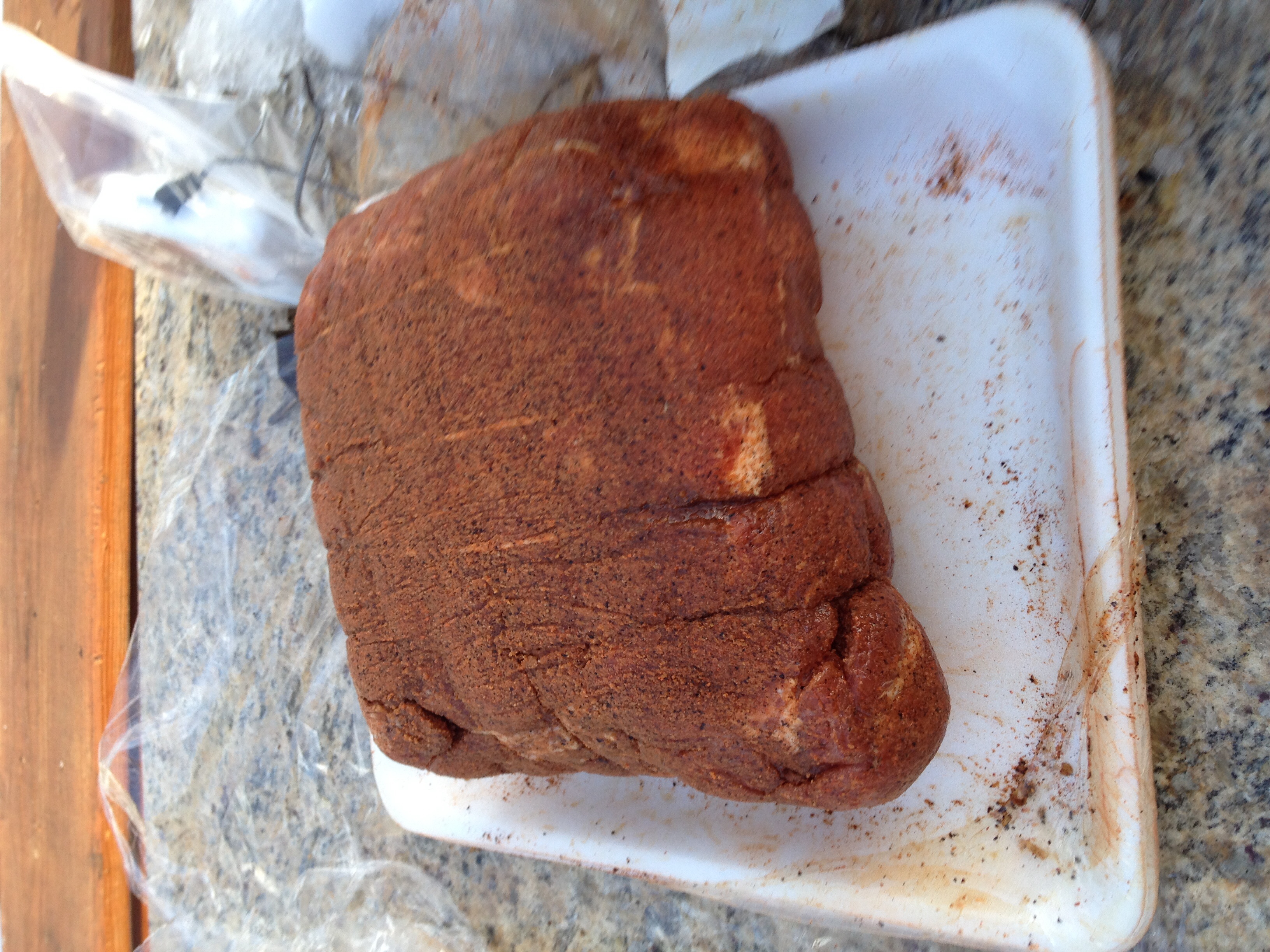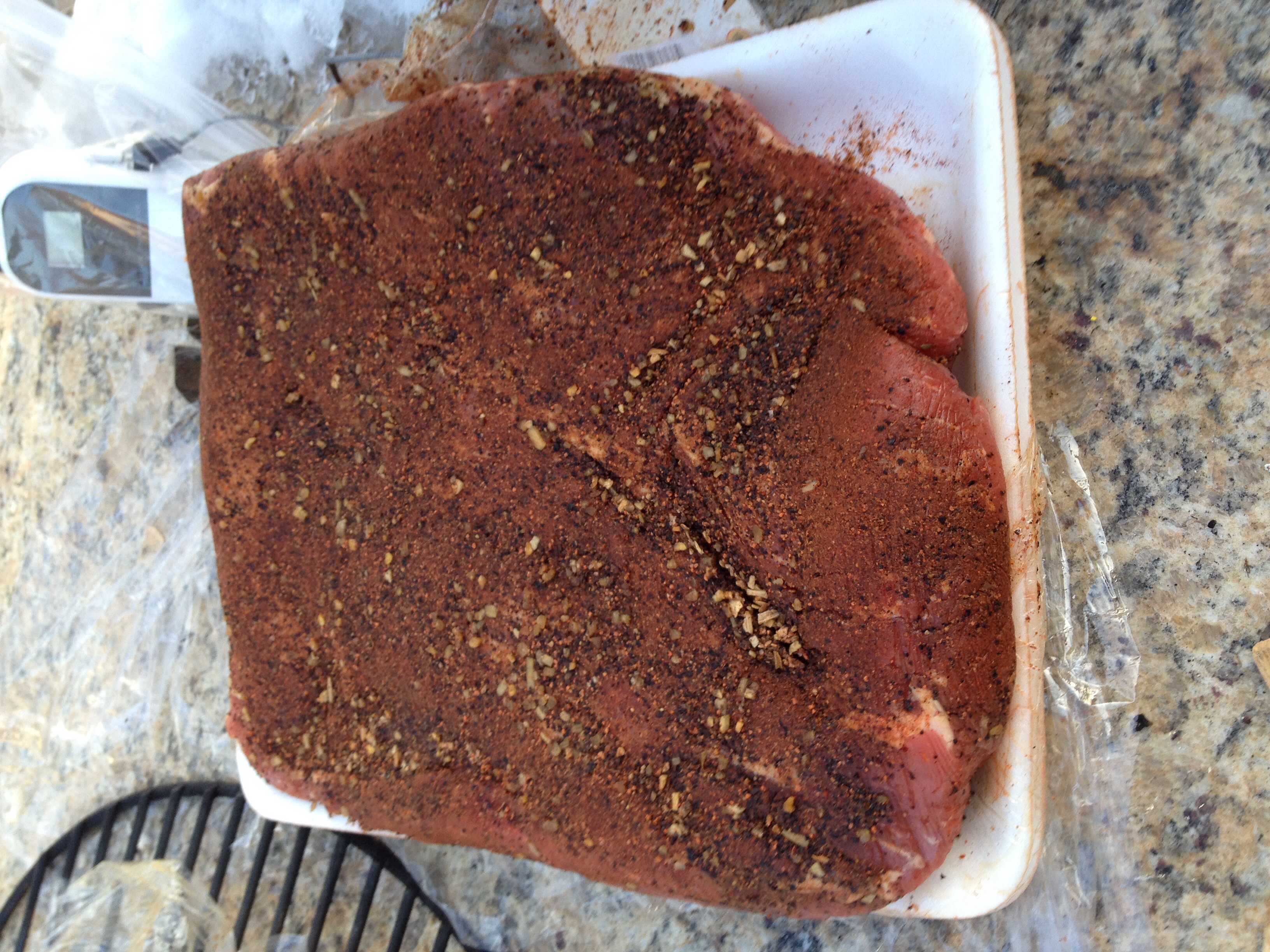 Used 50/50 of Jakes Coffee Rub and Dizzy Pig Cow Lick on the Brisket and Bad Byrons on the butt. I rubbed both meats with the rubs last ngiht about 11:00 PM and wrapped overnight in the fridge.