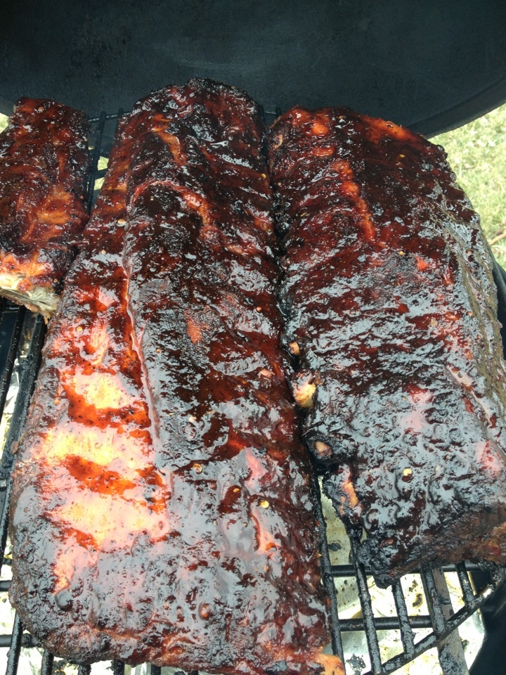 The above ribs:Baby Back Turbo Ribs 350 indirect for 1hr 40 min. Before cooking: Pull membrane , rub. Put on at 350 and leave the hell alone for about that time. This is called turbo ribs and I will never go back to 4 and 5 hour ribs. Note: with or w/o mustard works .. I like Bad Byron's Butt Rub / I like cherry & pecan mix for wood. If you want sauce: opened 15 min early and sauce. I like the sauce on the table.Salado TX & 30A FL: Egg Family: 3 Large and a very well used Mini, added a Mini Max when they came out (I'm good for now). Just given a Mini to add to the herd.