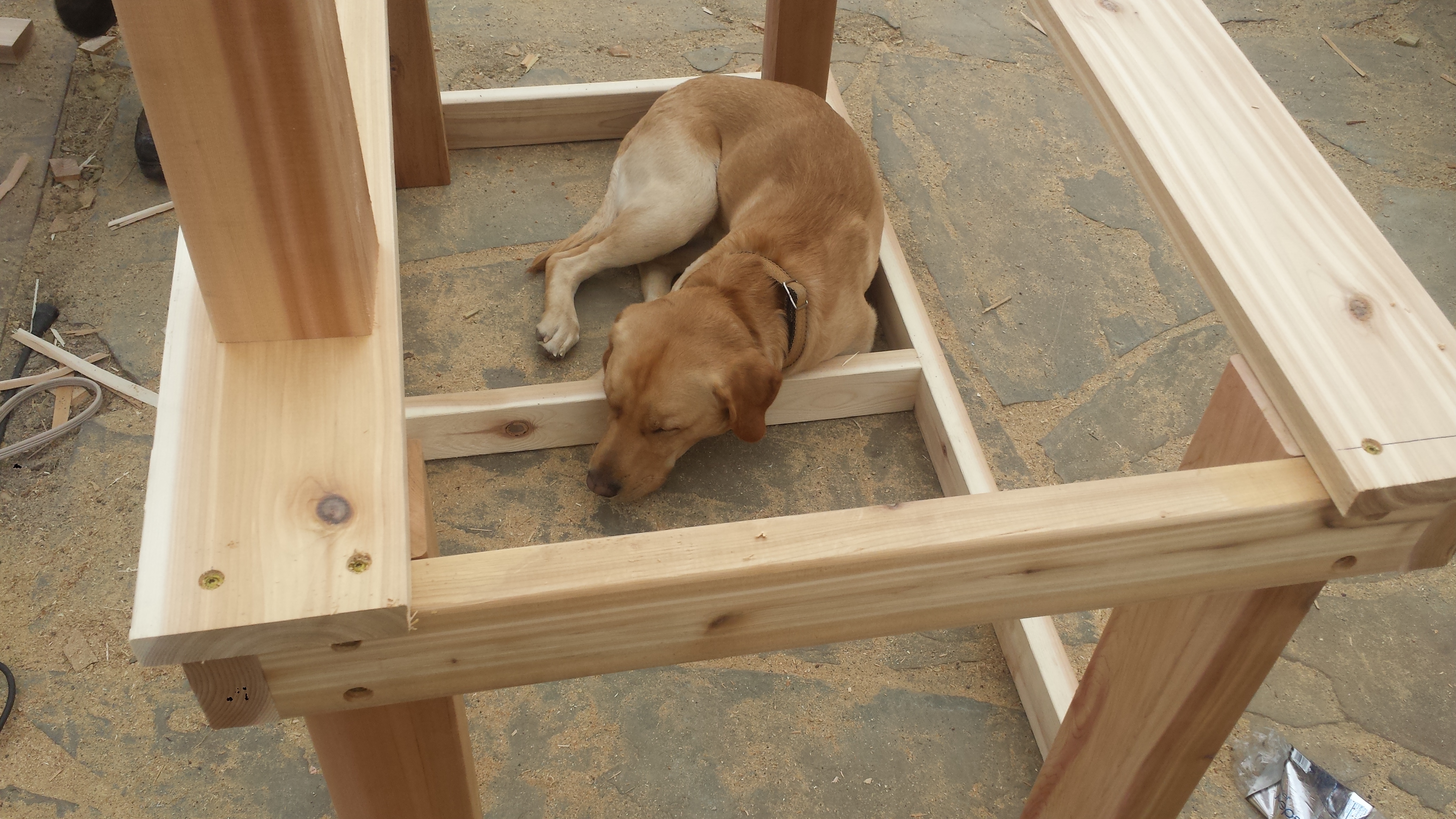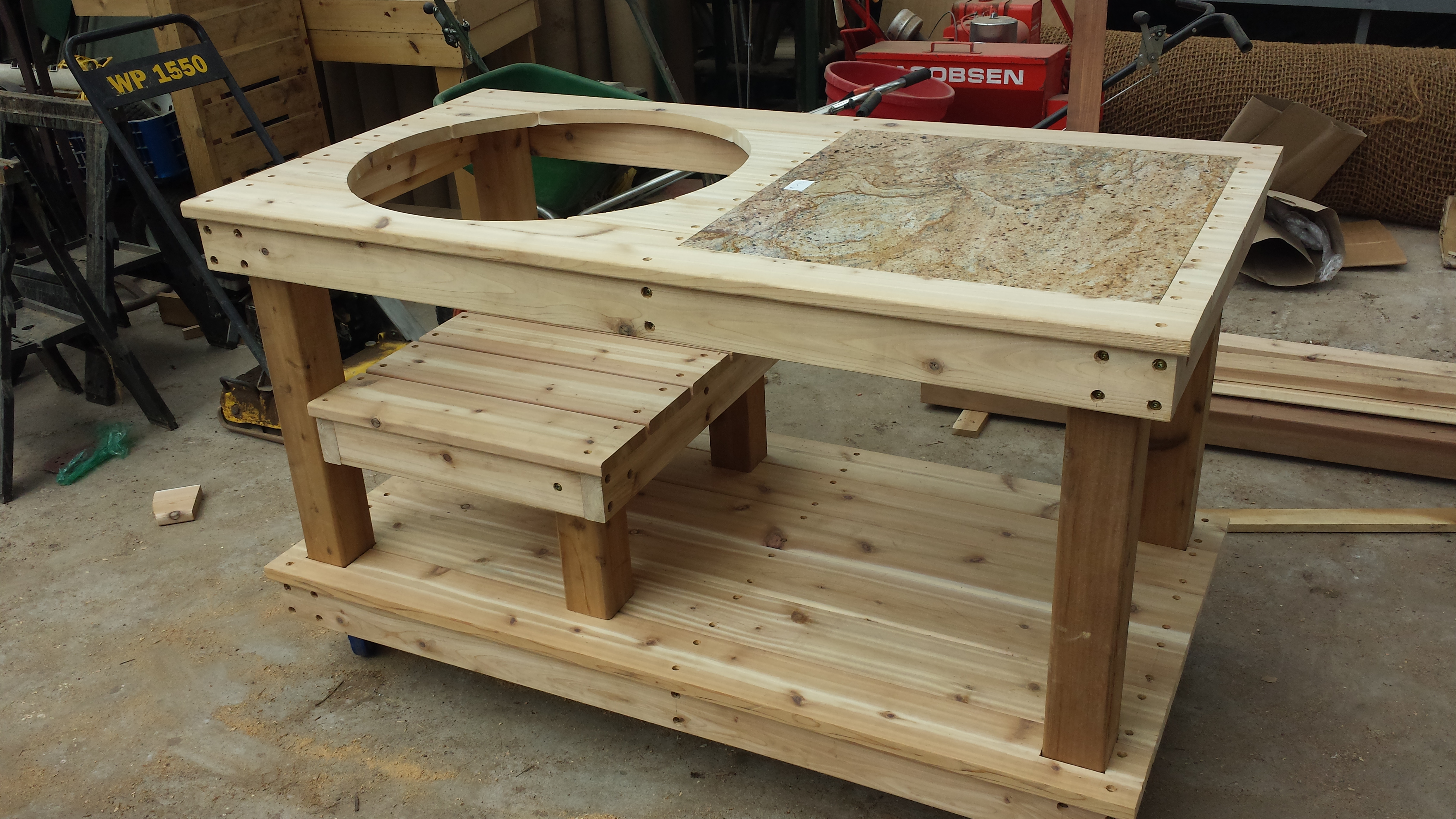 It is also really great to see all of the egg tables on here, I think I have made about 10 or so at work, and the current tables we sell are really turning out nice. unfortunately after seeing some of the built in egg stations on here im really starting to want to make a nice permanent cooking area in the backyard, but im not sure if i want to give up the ability to go portable with the egg quite yet. I figured I would throw up a picture of one of the XL tables right after it was finished and before it was stained.